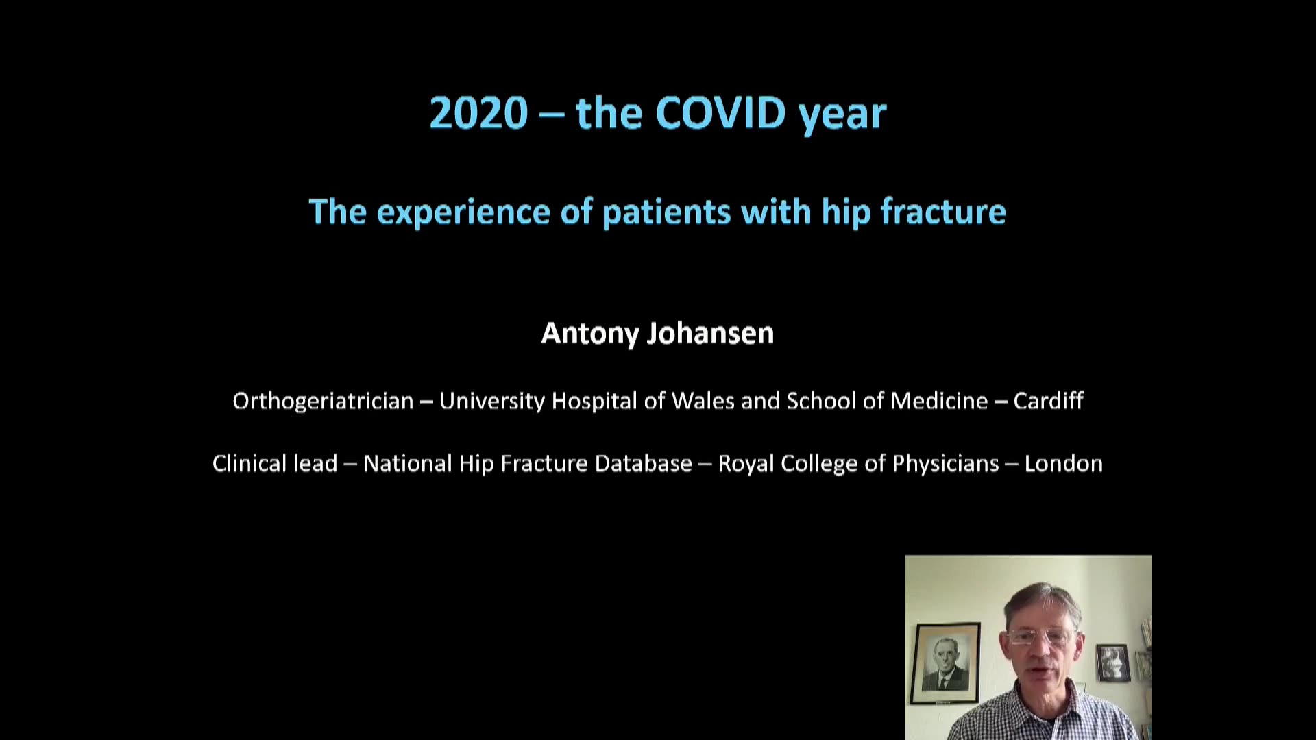 The presentation led by Antony Johansen discusses the resources made available by the National Hip Fracture Database (NHFD). Johansen expresses regrets for not attending the meeting and provides an overview of the NHFD's efforts during the COVID-19 pandemic, noting that a significant amount of pandemic-related data was integrated into their annual report. He emphasizes the importance of responses to reports and quality improvement over mere documentation.