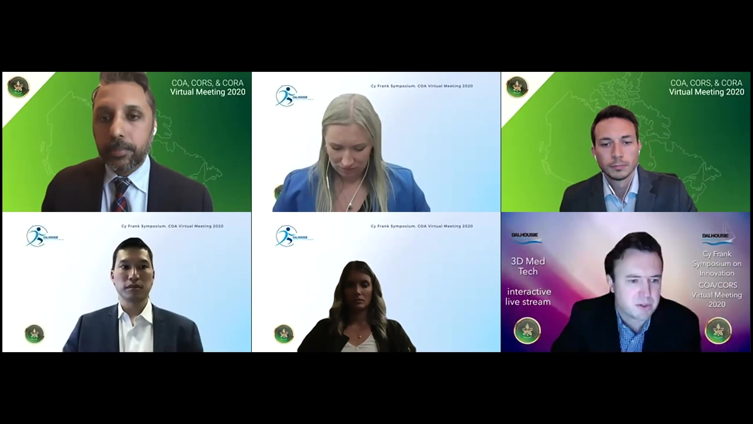 The discussion features Richard Hurley moderating a Q&A with experts Ivan Wong and Spencer Montgomery on 3D printing in medicine, specifically focusing on the materials and methods used for creating 3D models for surgical procedures.