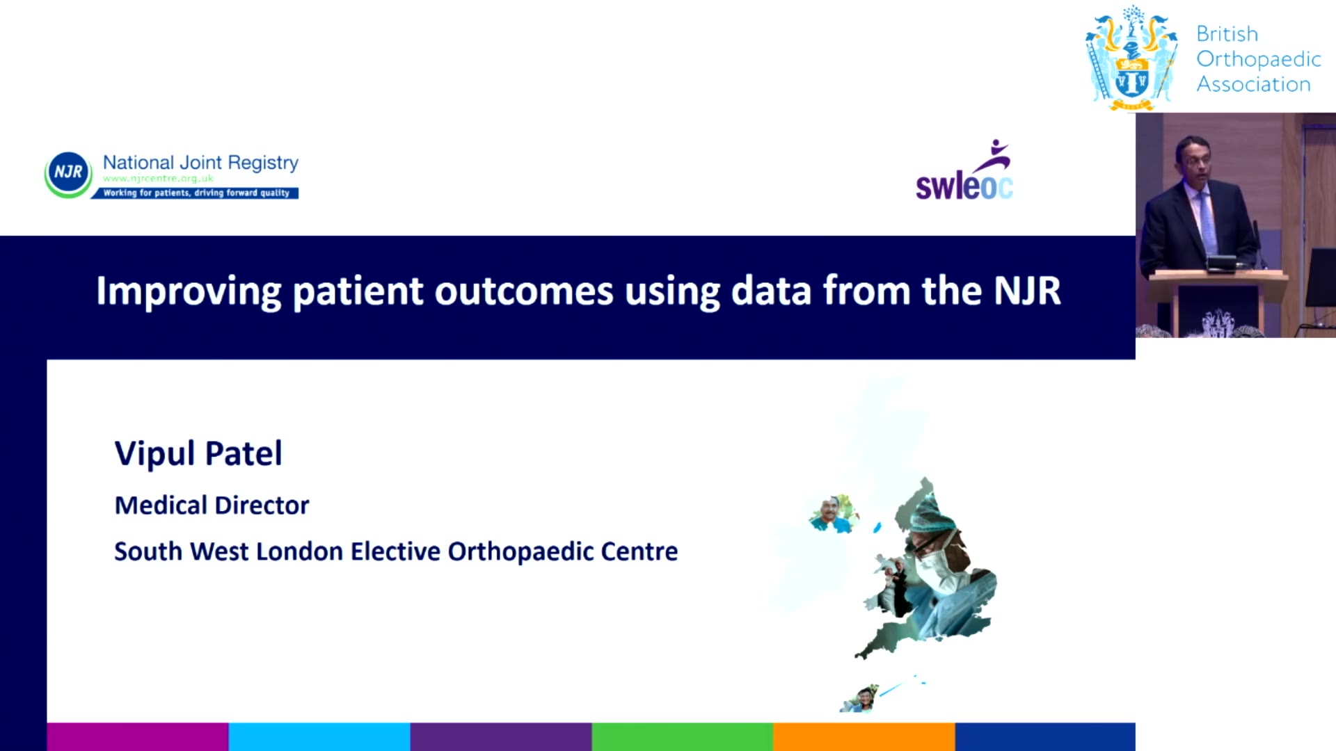 In this presentation delivered by VIPUL PATEL, the focus is on the surgical hub known as SWLEOC, established in 2004 in Southwest London to address lengthy waiting lists for orthopedic surgeries. SWLEOC is a collaborative effort among four local NHS trusts, featuring six theatres and 56 beds. The establishment has seen significant activity, handling over 6,000 procedures in the last financial year, including 3,000 arthroplasties, making it the largest contributor to the NJR registry with over 45,000 entries. The presentation discusses the integration of NJR data to enhance patient outcomes and the use of biannual "GIRFT away days" to review data and engage in open discussions among consultants. It emphasizes the importance of mentorship and shared learning, leveraging internal databases to monitor surgical outcomes and address potential outliers proactively. Key findings include the exploration of revision rates associated with different types of hip replacements in older patients and sustained improvements in practice following collective consultations among surgeons. The outcome is marked by enhanced performance metrics and a commitment to continuous improvement in surgical practices.