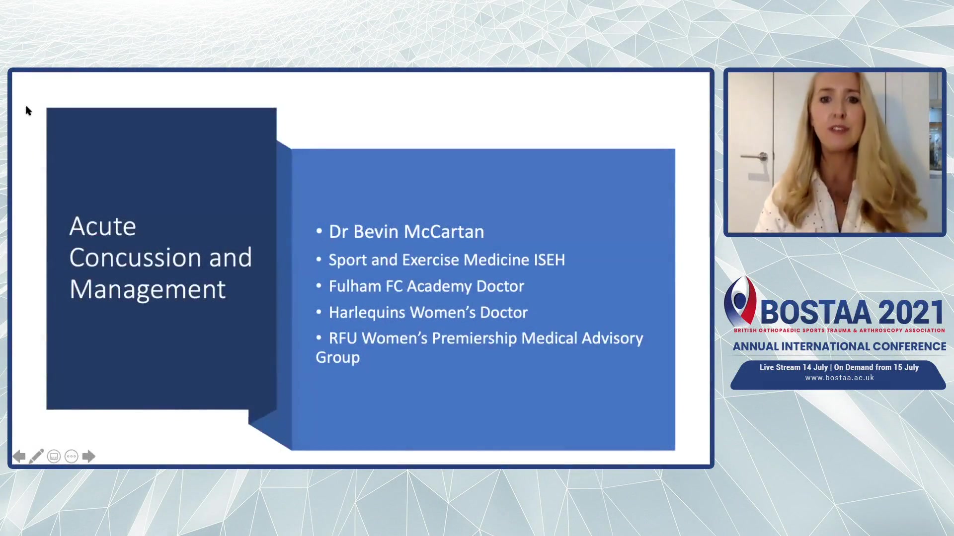 Bevin McCartan, a sport and exercise medicine doctor affiliated with Fulham Football Club and Harlequins Rugby Club, provides an informative presentation on acute concussion and its management. He begins by defining concussion as a traumatic brain injury resulting from an impact to the brain that disrupts the normal function of nerve cells, leading to various symptoms. McCartan emphasizes that loss of consciousness is not common and outlines the signs of concussion observed on the pitch, such as seizures, abnormal movements, staggering, and confusion.