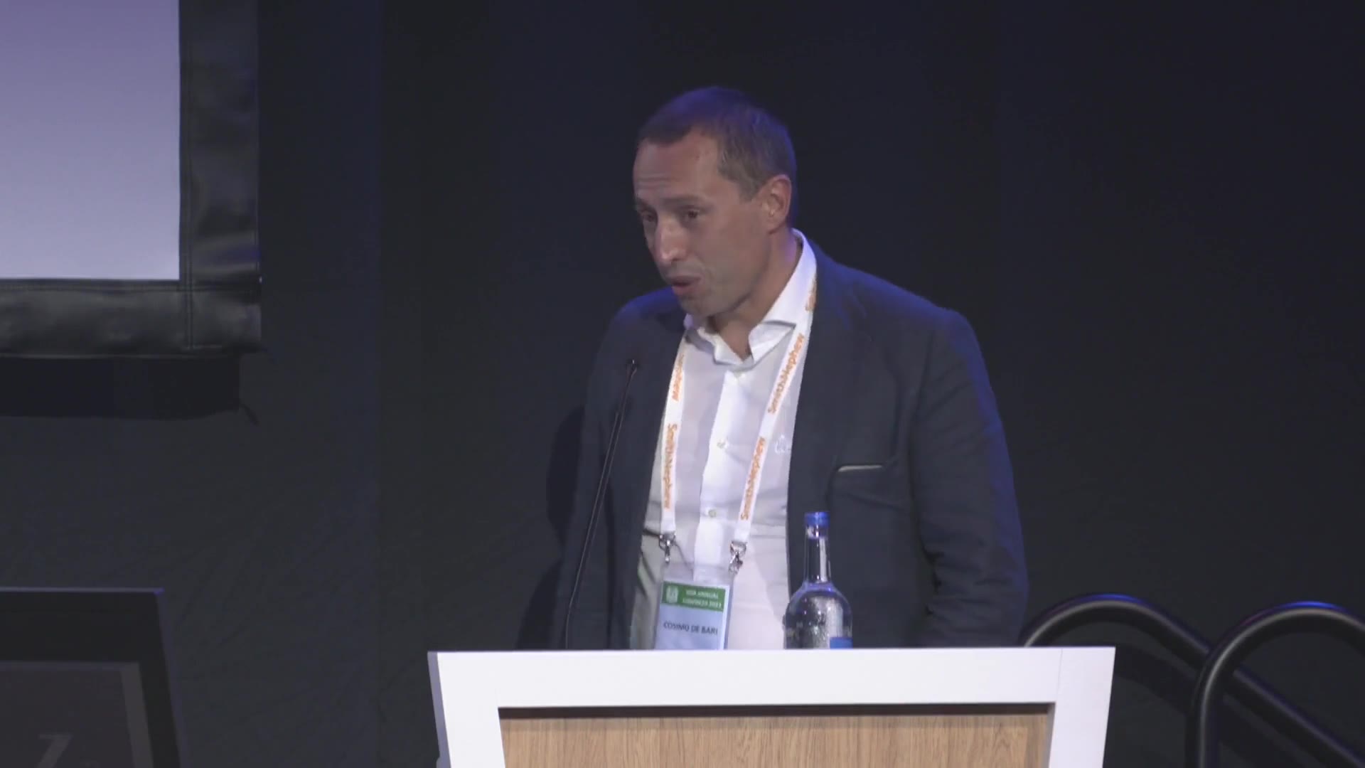The provided transcript is a detailed presentation by Professor Cosimo De Bari at a conference focused on cell-based therapies for cartilage repair and osteoarthritis. Professor De Bari expresses gratitude for the invitation and shares his excitement about in-person gatherings after a long hiatus.