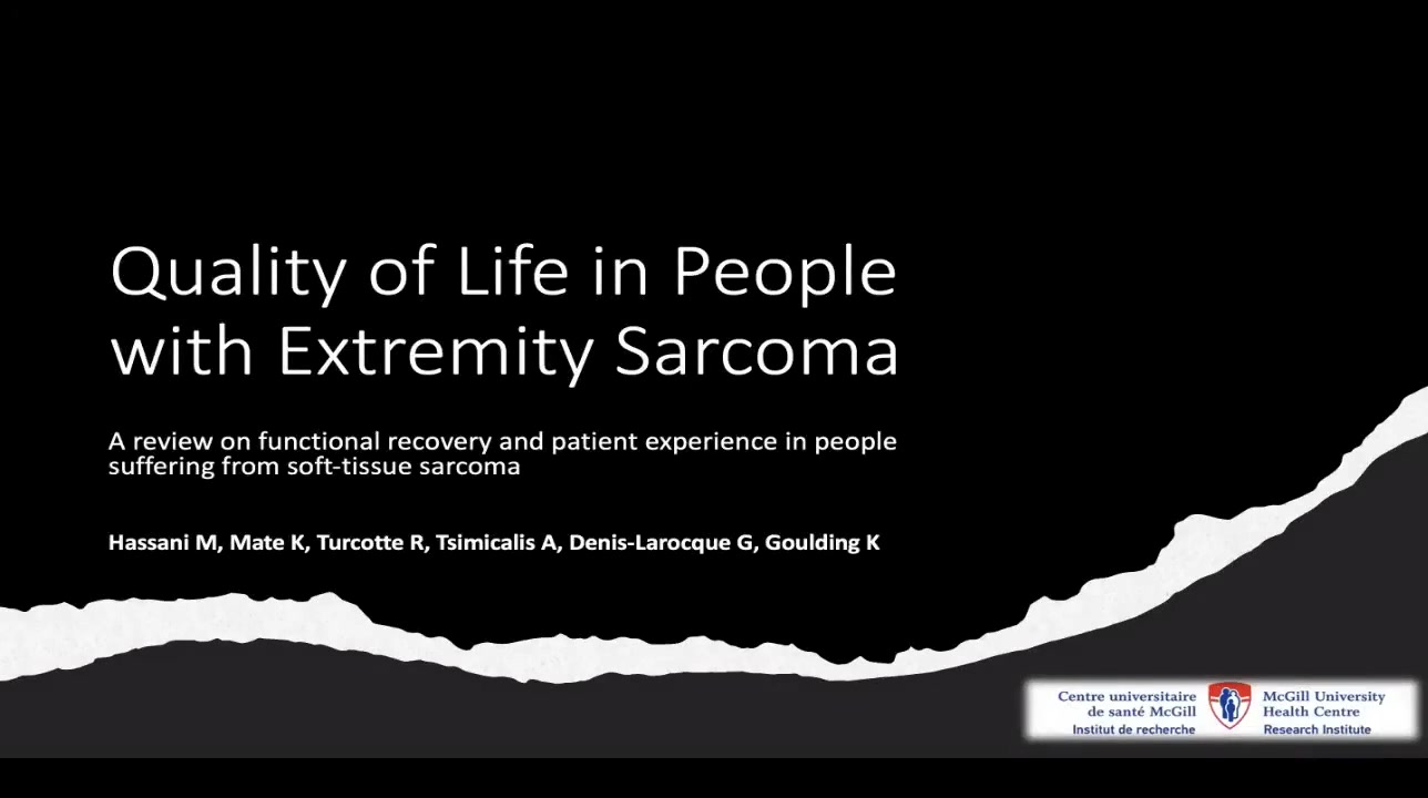 This presentation by Mohammad Hassani focuses on a study assessing the quality of life of patients with extremity soft tissue sarcoma. The study highlights advancements in survival rates due to improved care and shifts in evaluation from caregiver assessments to patient-reported outcomes. A review of existing literature identified that there are currently no specific patient-reported outcome (PRO) measures for soft tissue sarcoma, which emphasizes the necessity for more tailored assessments.
