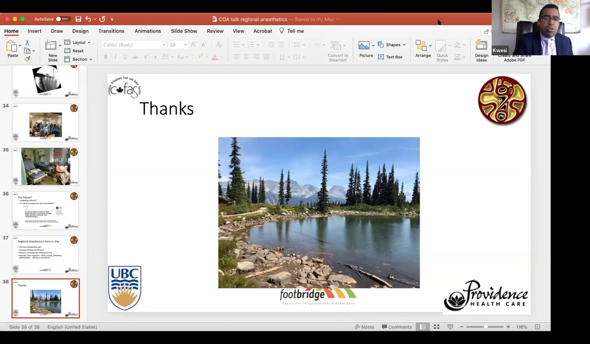 This presentation features an in-depth discussion on the anesthetist's approach to anesthesia and analgesia for foot and ankle surgery, led by Kwesi Kwofie and Chris Prabhakar. They explore the benefits of regional anesthesia, emphasizing its effectiveness in reducing postoperative opioid consumption, shortening hospital stays, and limiting aerosol-generating procedures, especially critical in today's health climate. The talk outlines key complications associated with regional anesthesia, such as infection and nerve injury, and presents statistical data to illustrate the safety and outcomes of peripheral nerve blocks.