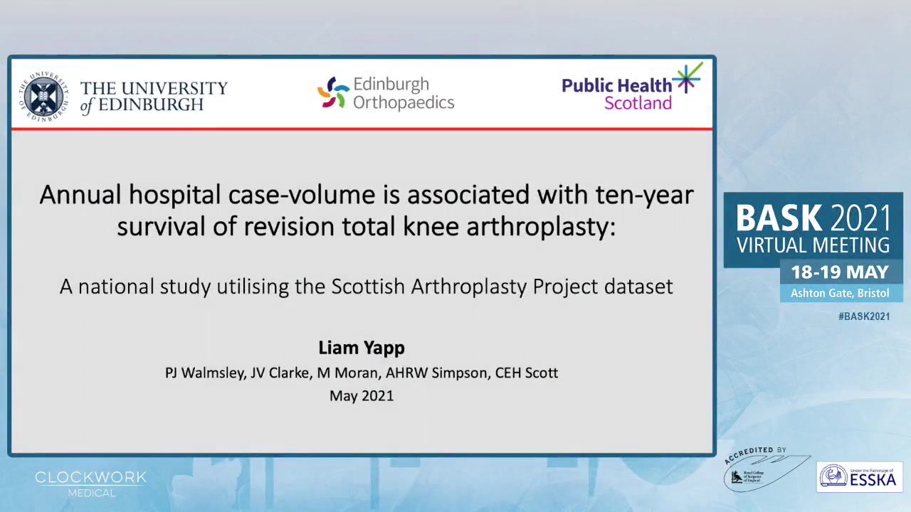 This presentation, delivered by Liam Yapp, a registrar from Edinburgh, discusses a compelling study examining the long-term survival rates of revision total knee arthroplasty (TKA) in Scotland. The study investigates the correlation between annual hospital case volume and ten-year survival rates of revision surgeries conducted over a two-decade span using the Scottish arthroplasty project dataset. Yapp emphasizes the escalating burden of knee arthroplasty cases and the unclear longevity of revision procedures.