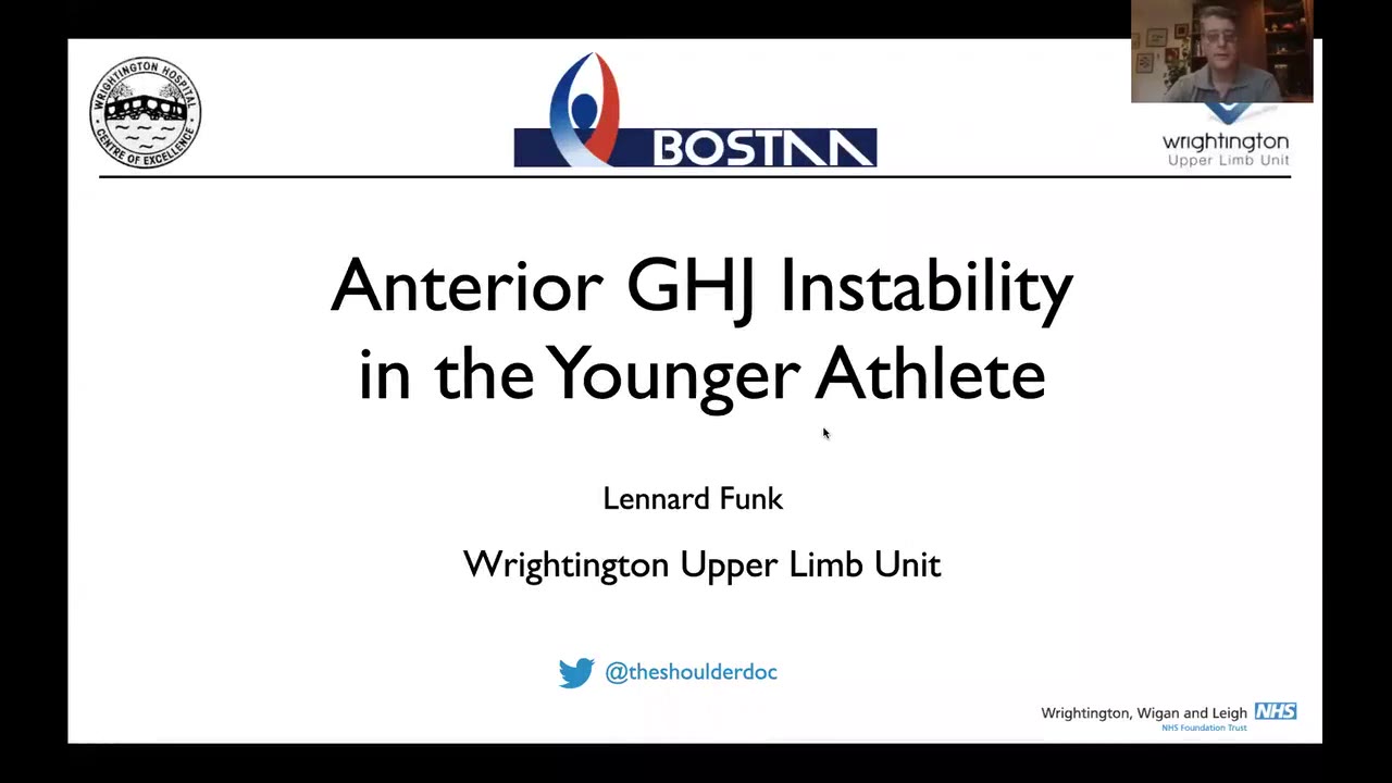 The presentation is led by Dr. Lennard Funk, who discusses the important topic of glenohumeral joint instability in younger athletes, particularly those aged 16 to 25. He expresses gratitude to BOSTAA and mentions the pressures young contact athletes face with increasing physical demands, pushing them toward potential injuries. Dr. Funk highlights a significantly high recurrence rate for those who undergo non-operative treatments for traumatic anterior instability, citing studies that indicate rates as high as 100%. He contrasts these findings with surgical outcomes, particularly the Latarjet procedure, which is presented as a viable option for athletes facing serious injuries. Dr. Funk emphasizes the importance of understanding the structural lesions present and proposes evaluating treatment decisions based on patient-specific factors, including their age, sport, and career aspirations. The lecture culminates in a discussion about appropriate management decisions, weighing surgical intervention against the possibility of non-operative treatment, and encourages an individualized approach for each athlete per their situation.