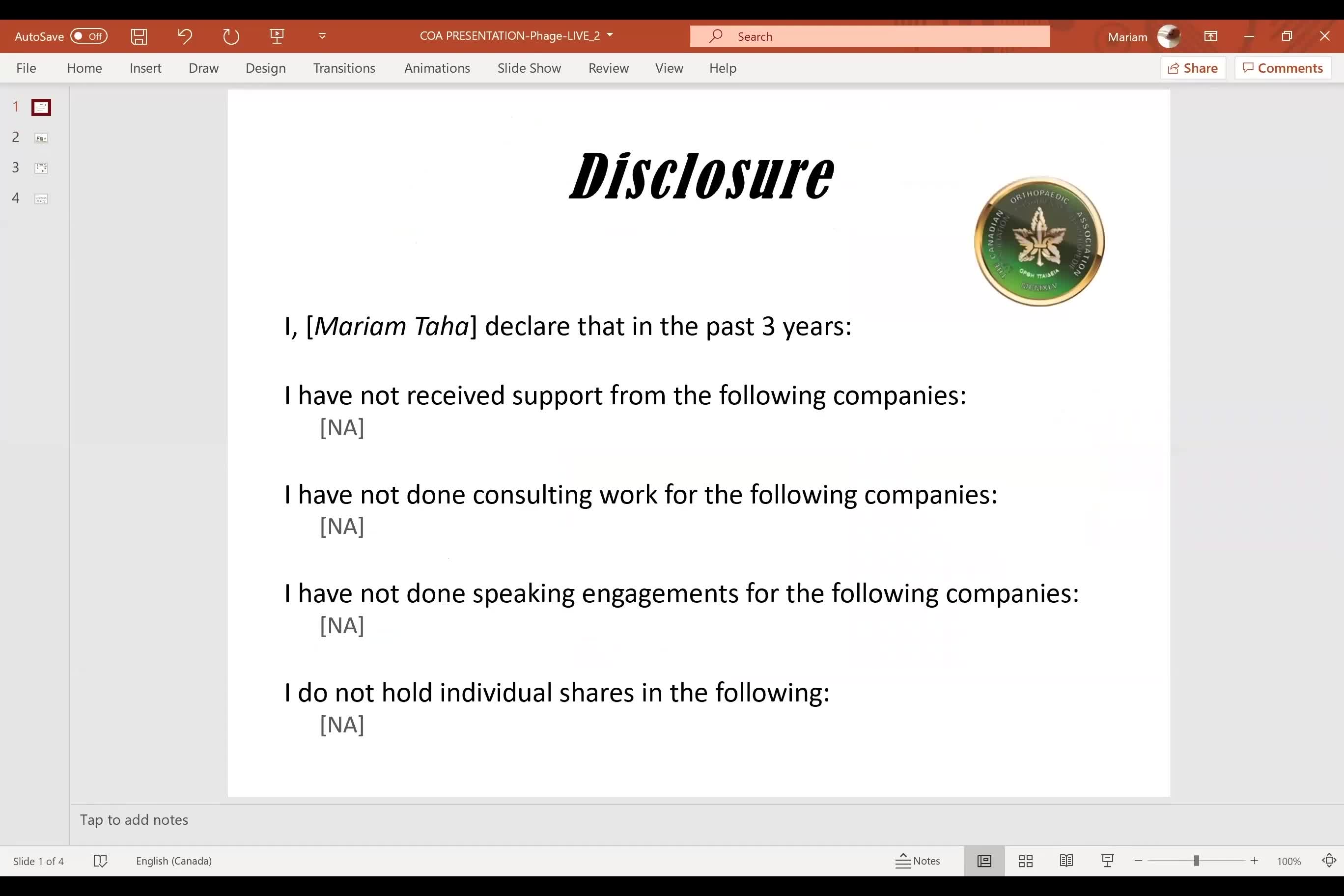 In this presentation, Mariam Taha introduces her team's research focused on utilizing bacteriophages to combat MRSA biofilms in orthopedic applications. She contextualizes the issue by explaining how biofilm formation on implant surfaces significantly contributes to treatment failures in periprosthetic joint infections, due to their resilience against antibiotics and mechanical removal. Taha discusses the natural specificity of lytic bacteriophages, detailing their mechanism of action, which includes targeting bacterial cells and producing enzymes to dissolve biofilm matrices. The study aims to assess the efficacy of bacteriophage cocktails compared to single phages and vancomycin in eliminating Staphylococcus biofilm. Experimental data demonstrates that a specific phage showed superior efficacy over others, and the combination of multiple phages was more effective than individual treatments or vancomycin alone. Current efforts involve testing additional strains of Staphylococcus and further evaluating the combined effects of phage cocktails with antibiotics to strengthen the case for phage therapy in treating infected joint implants.