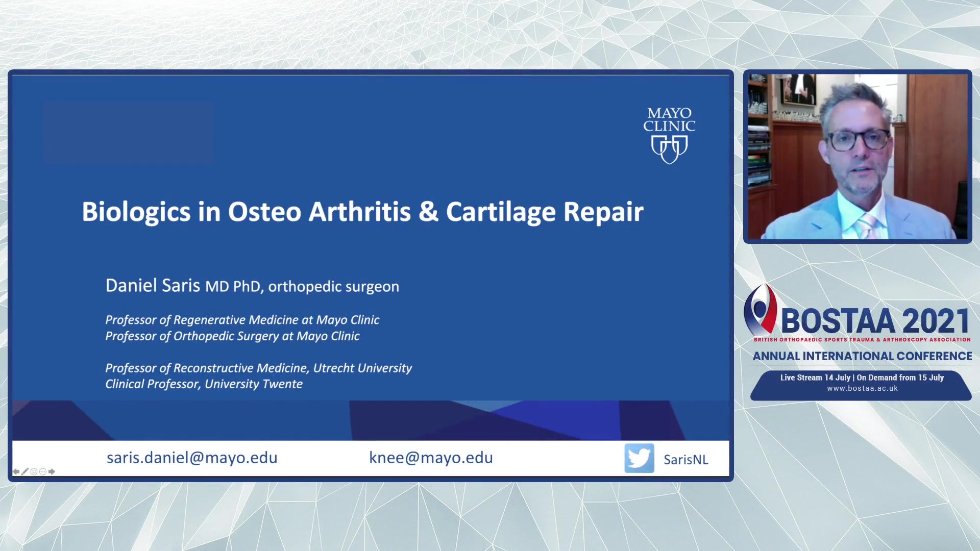 Throughout the presentation, Saris interweaves a narrative of hope and scientific rigor, stressing the need for continuous advancements in regenerative medicine, while joyfully anticipating the contribution of ongoing research to alleviate the burden of joint diseases.