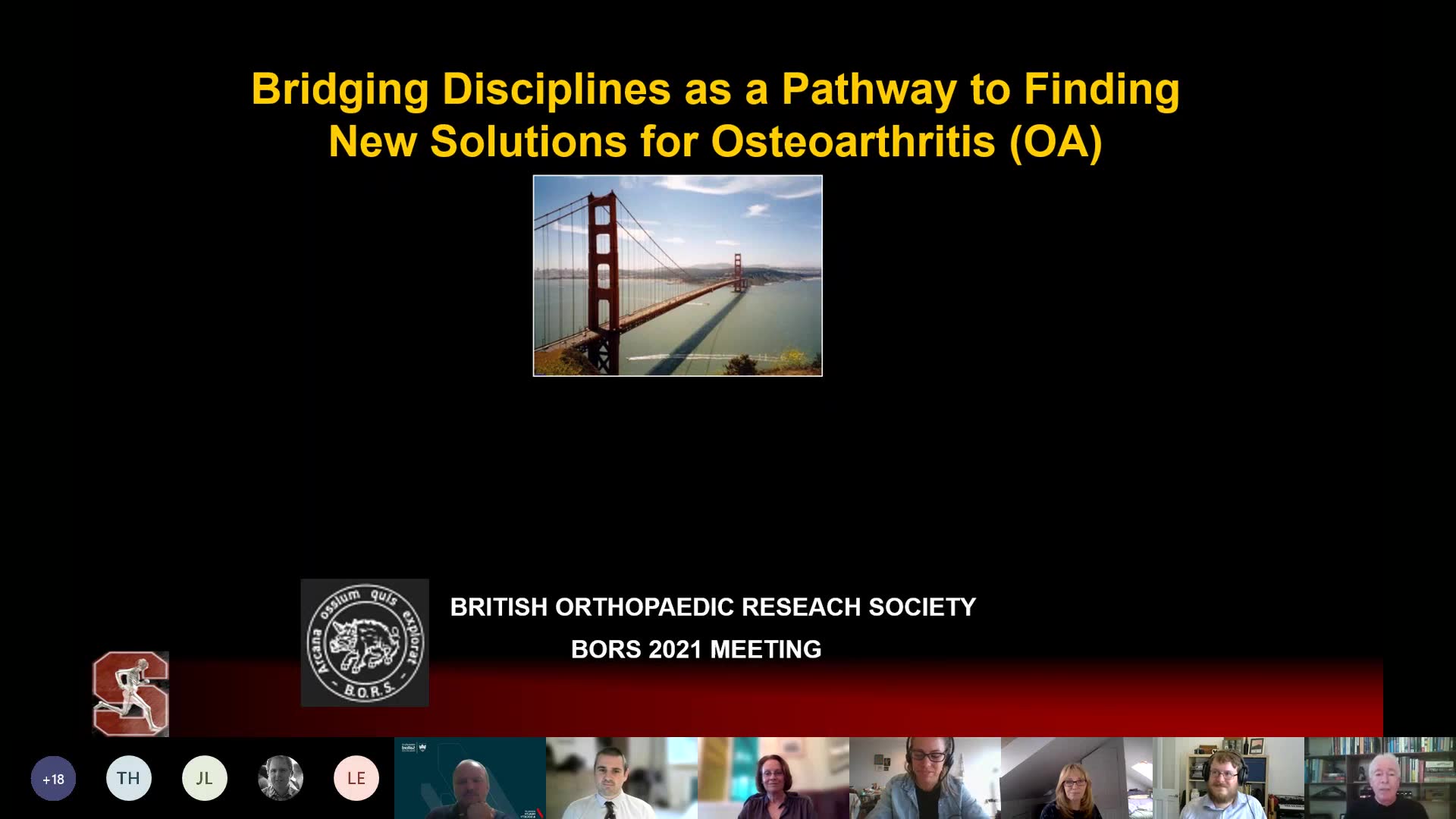 This talk by Thomas Andriacchi addresses the intersection of various disciplines in orthopedic research, particularly focusing on osteoarthritis (OA). The title, "Bridging Disciplines is a Pathway to Finding New Solutions for Osteoarthritis," encapsulates the essence of the presentation, which was derived from a collaborative effort between the Orthopedic Research Society and the Osteoarthritis Society International.