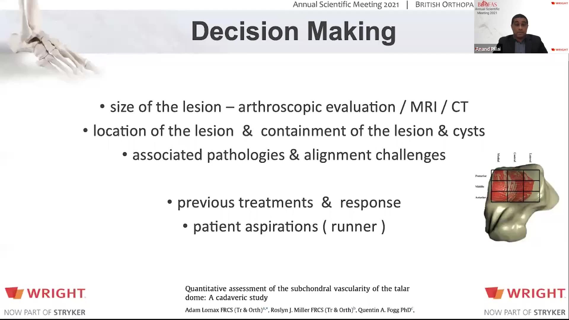 In this presentation, Anand Pillai addresses the challenges faced by a young athlete who has undergone a failed micro fracture procedure, emphasizing the importance of understanding the factors surrounding lesions in sports medicine. He discusses the significance of lesion size and location, highlighting that larger lesions tend to lead to poorer outcomes after micro fracture treatments. Pillai suggests that lesions over 1.5 cm might not be suitable for this procedure and notes the differences in recommendations from various studies.