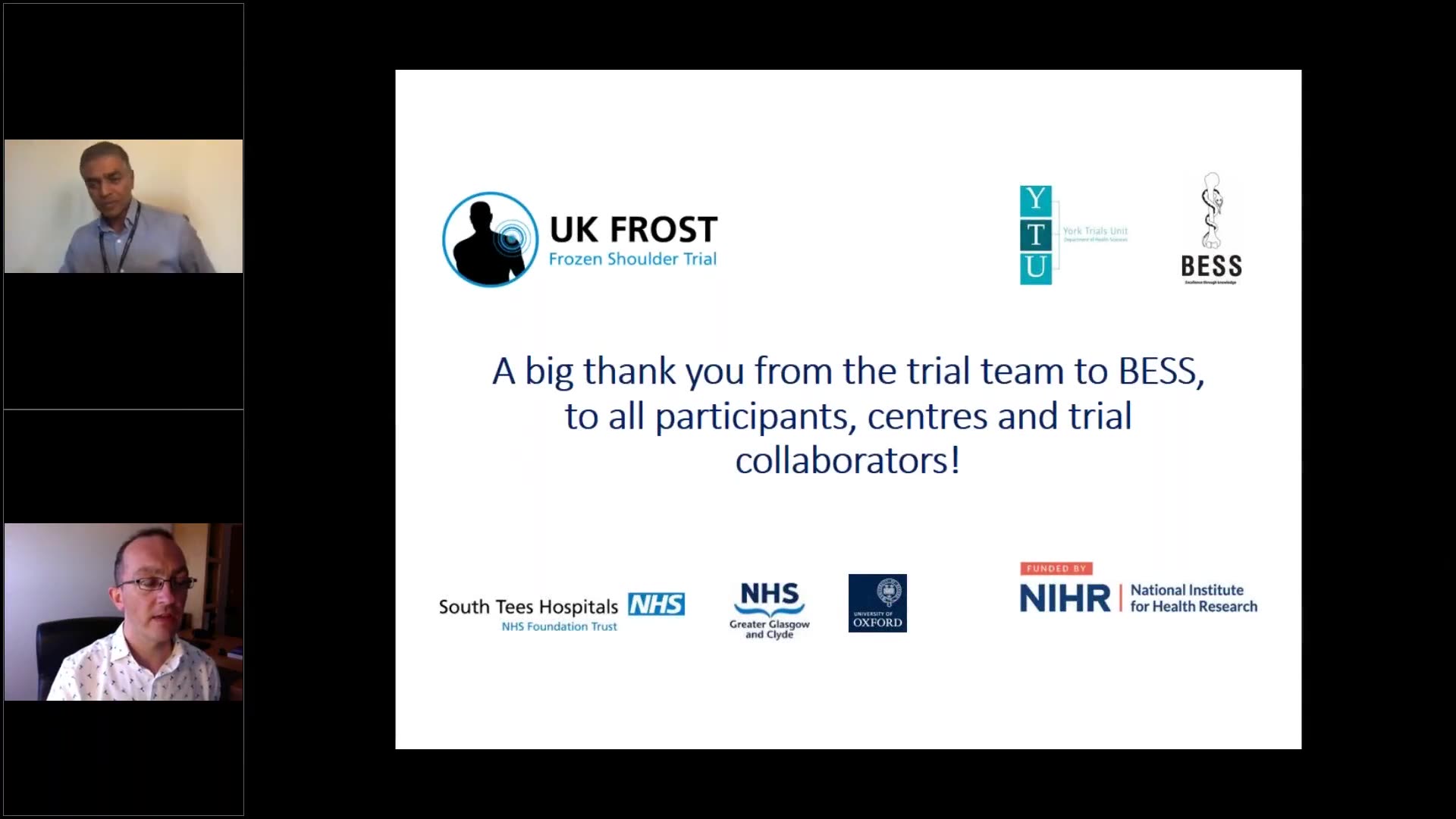 Joe explained the practical implications of a tissue sub-study embedded within UK FROST, which revealed promising directions for biological therapies for frozen shoulder. Both he and Matthew acknowledged the rising costs of running trials, advocating for the integration of multiple studies to optimize resources and data collection. Amar Rangan added that collaboration among studies allows for better planning and analysis, ultimately advancing the field of orthopedics.