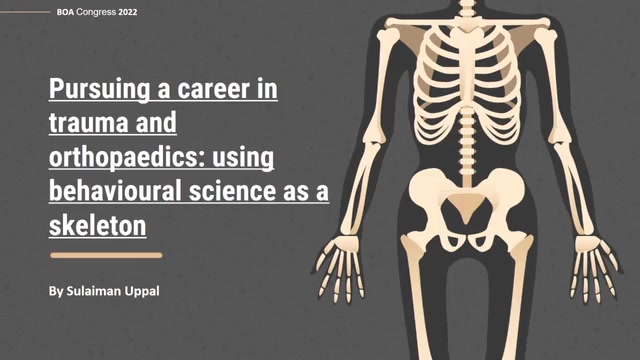 In this presentation, Salli Uppal, a final year medical student at the University of Oxford, discusses factors that influence medical students' decisions to pursue a career in trauma and orthopedics (T&O). She introduces her essay written for the BOA's medical student essay competition, exploring the motivations and barriers that shape this career choice. Using the COM-B model from behavioral science, she outlines three main categories that affect decision-making: capability, opportunity, and motivation. Salli highlights how personal beliefs about dexterity, positive surgical experiences, and lifestyle considerations, including work-life balance and earnings potential, play crucial roles in shaping students' interests in T&O. The presentation concludes with an invitation for questions and directs the audience to her essay for further details.
