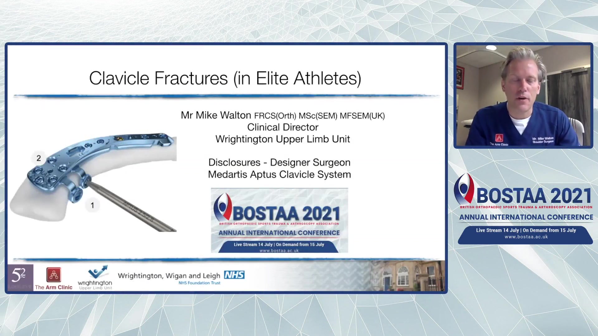 In this informative talk, Michael Walton, Clinical Director and Shoulder Surgeon at Wrightington Upper Limb Unit, discusses his management strategies for clavicle fractures in elite athletes. Walton begins by highlighting the crucial role of the clavicle in shoulder mechanics, which facilitates throwing motions essential for many sports. He outlines that clavicle fractures are relatively common, representing 2% to 5% of all adult fractures, with a higher incidence among adolescents due to sports injuries.