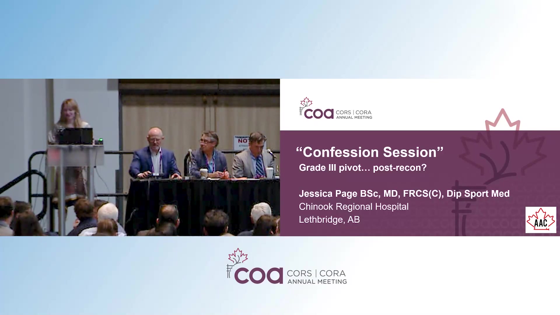 Throughout her talk, she reflects on a particularly challenging surgery involving a meniscal repair, where an unexpected mistake occurred—an endo-button misplaced in a suprapatellar pouch. She describes the difficulty of addressing this issue without the aid of X-rays or advanced surgical tools available in larger hospitals. With a mix of tension and humor, she narrates her creative approach to resolve the complication and successfully re-prep the graft.