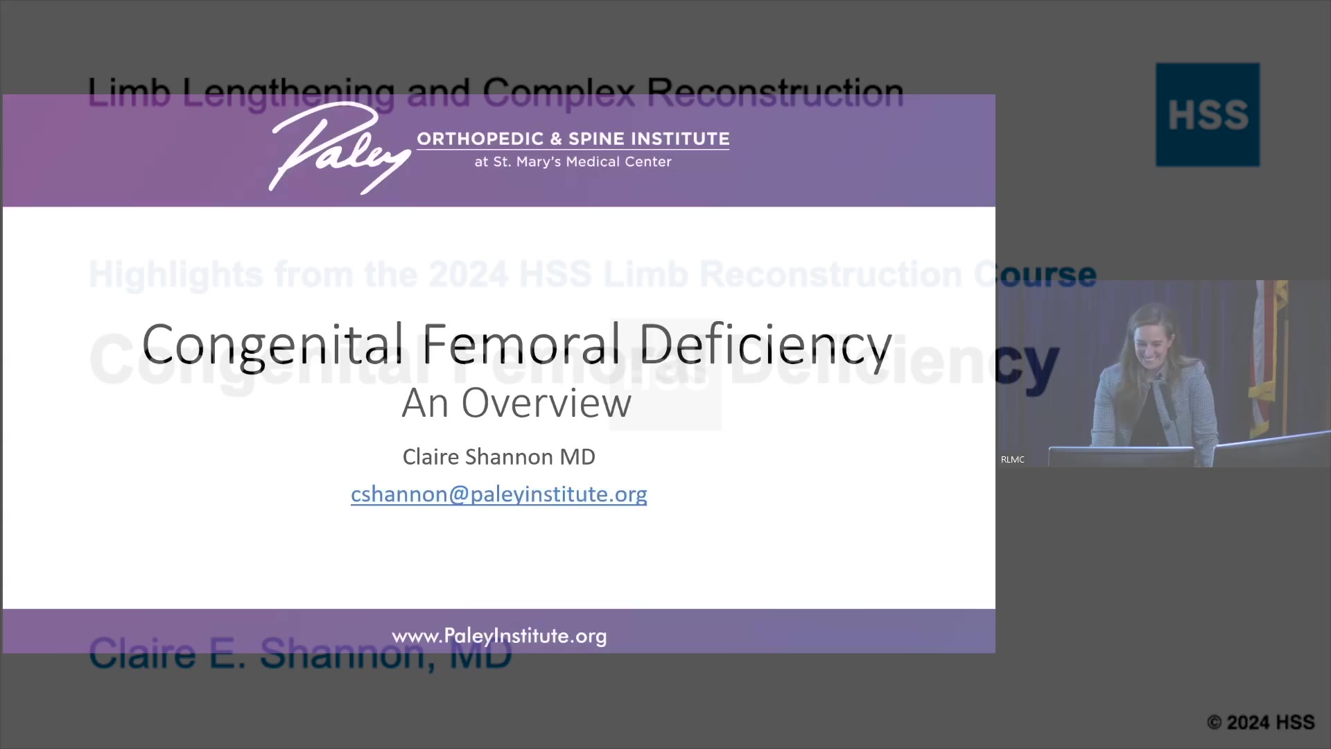 This video presentation features Claire Shannon discussing Congenital Femoral Deficiency (CFD), a rare condition characterized by congenital malformations of the femur. Shannon explains that CFD's incidence ranges from 1 in 50,000 to 1 in 200,000, with severe cases, particularly bilateral non-ossified necks, being much rarer. The lecture covers the varying presentations of CFD, genetics, associated syndromes, and the complexity of its deformities, which include varus, retroversion, and flexion of the proximal femur.