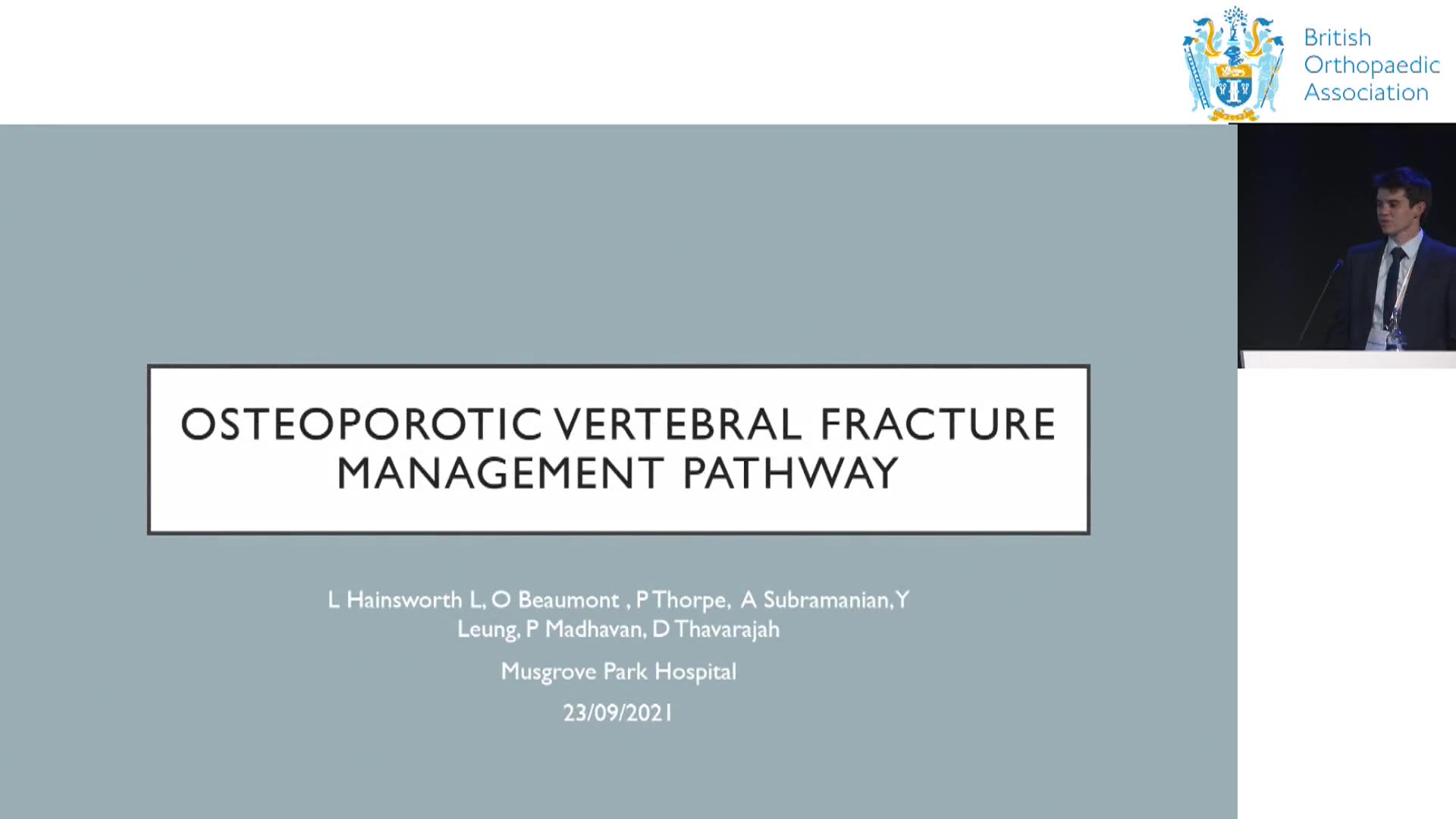The presentation delivered by Louis Hainsworth at Musgrove Park Hospital focuses on the development of a new pathway for managing osteoporotic vertebral fractures. Hainsworth outlines the need for this initiative, highlighting that 17% of spinal emergency clinic visits were related to these fractures, leading to high demand on resources. The study involved a retrospective review of six months worth of patient records, revealing that the majority of patients received X-rays and none required surgical intervention. The new pathway includes direct referrals to the spinal team with immediate X-ray availability and the provision of TLSO braces when appropriate. Patients who meet the criteria can follow up on their own without needing further imaging, while others are directed back into the spinal emergency clinic. Hainsworth emphasizes the anticipated benefits of reduced hospital visits and X-rays, decreased clinic demand, and a positive environmental impact, ultimately aiming to enhance patient care and optimize clinic availability.