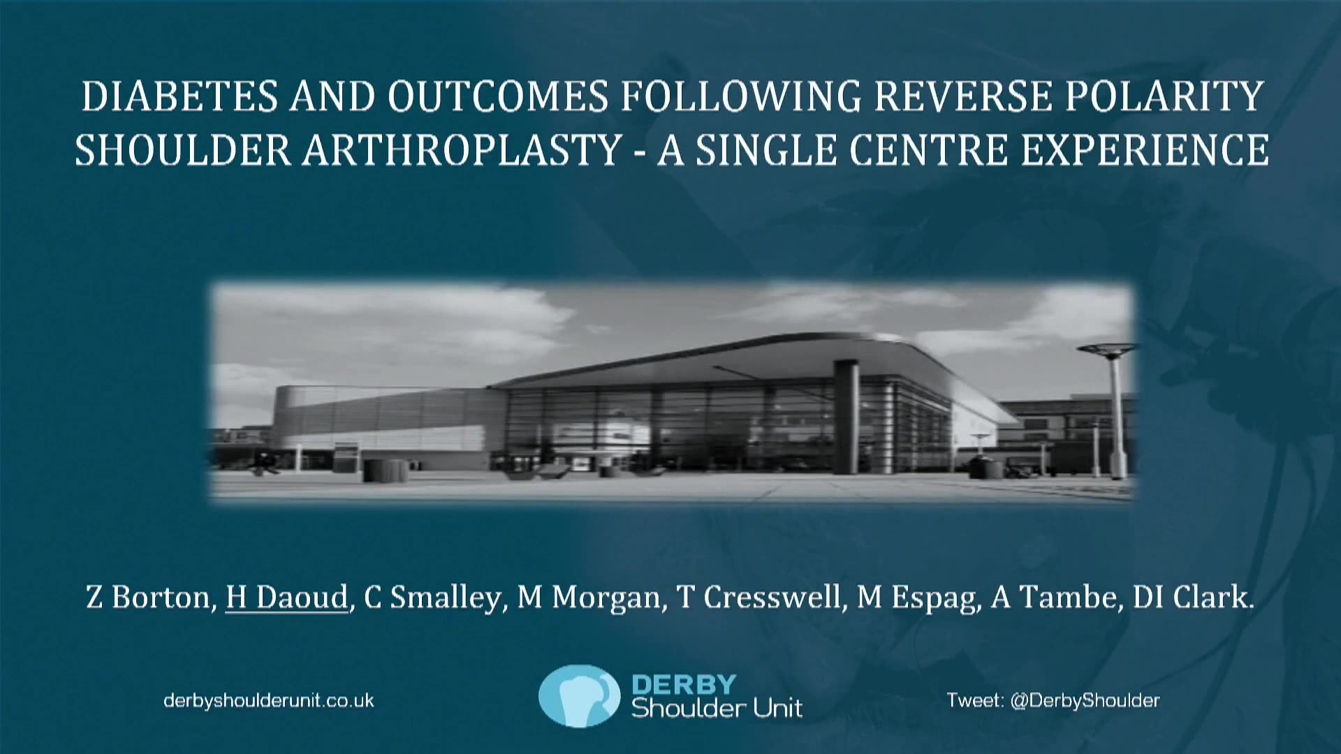 In this presentation, junior clinical fellow Hasan Daoud from Royal Derby Hospital delves into the impact of diabetes on outcomes following reverse polarity shoulder arthroplasty. He outlines the established connection between diabetes and poorer outcomes in total knee and total hip arthroplasties, noting a gap in the literature concerning shoulder surgeries. Daoud discusses prior research indicating a significantly higher complication rate for diabetic patients undergoing rotator cuff repair and references extensive database studies that have hinted at similar risks for shoulder arthroplasties, particularly regarding increased length of hospital stay, morbidity, and mortality among diabetic patients, though consensus on these findings is lacking.