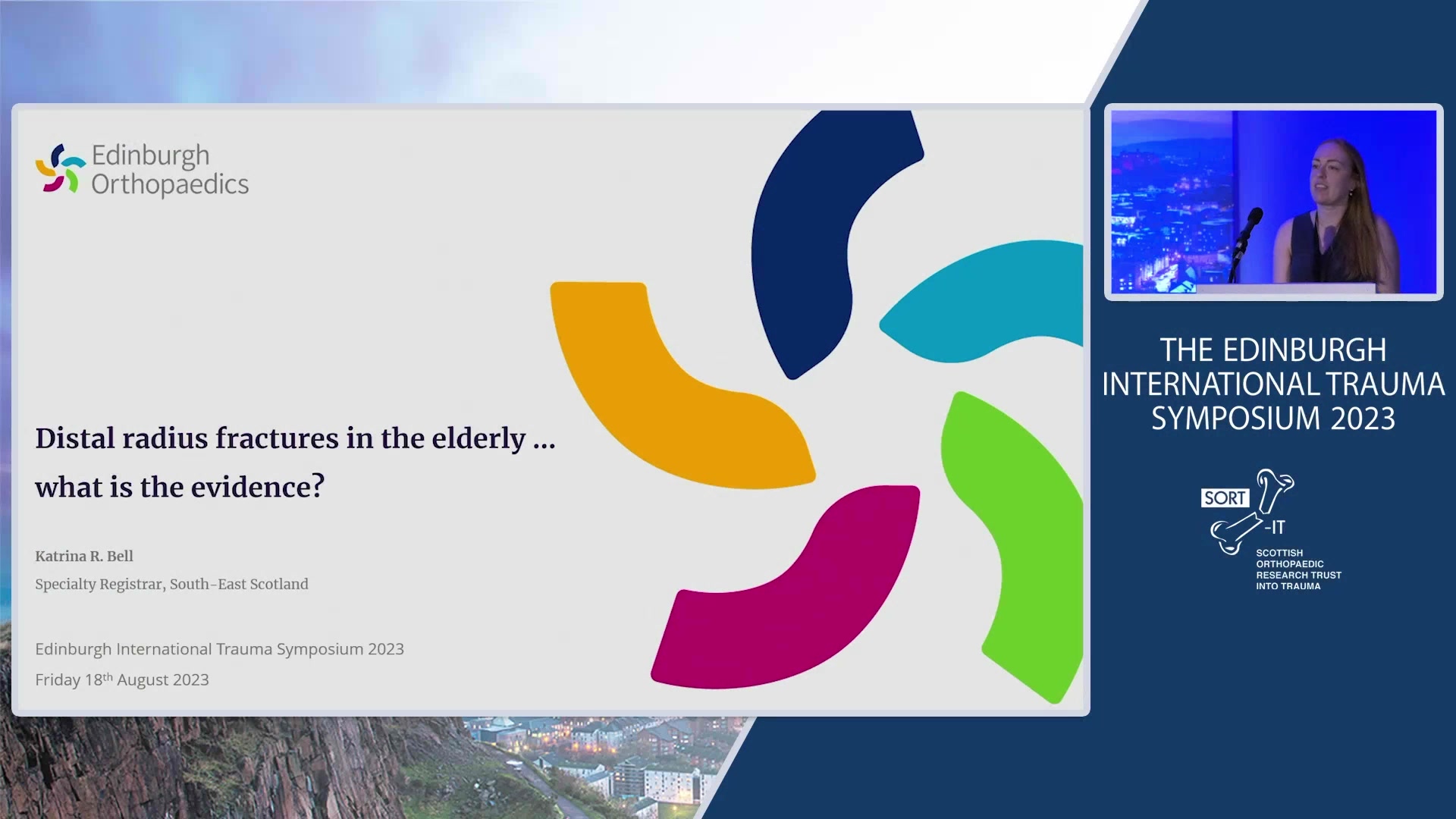 In this presentation, Dr. Katrina Bell, a specialty registrar and clinical research fellow from Edinburgh, addresses the topic of distal radius fractures, focusing on their prevalence and the evidence that shapes current medical practices. She begins by highlighting the epidemiology of these fractures, noting they are the most common type treated by orthopedic surgeons and have a bimodal distribution, primarily affecting young men and older postmenopausal women. With projections indicating that by 2040, one in four people in the UK will be over 65, the anticipated rise in incidents of distal radius fractures becomes increasingly concerning.