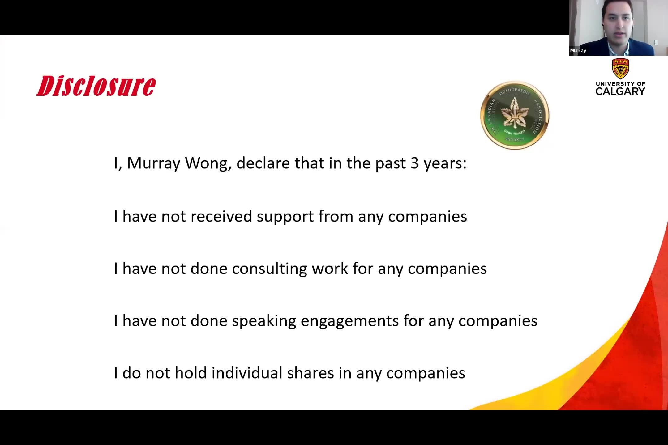 He reports that during plantar flexion, there is a notable decrease in syndesmosis width, while fibular rotation changes were also observed. Wong concludes by highlighting the necessity of considering ankle position during surgical fixation to achieve anatomical reduction and improve functional outcomes, and encourages further exploration of fixation techniques that can accommodate natural movement.