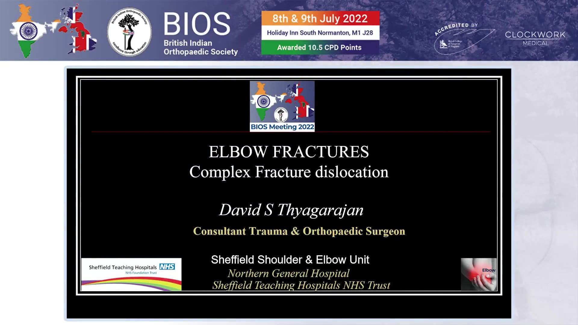 This presentation, delivered by Dr. David Thyagarajan, provides an insightful overview of elbow injuries, particularly focusing on dislocations and fractures. The talk begins with an introduction to elbow anatomy and the prevalence of elbow dislocations in adults, emphasizing the importance of recognizing and treating these injuries to prevent long-term complications such as chronic instability and arthritis.