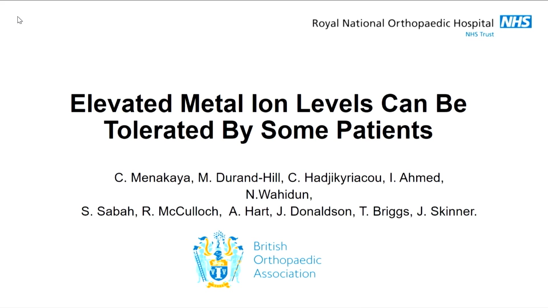 This presentation by Chi Chi Menakaya, a trainee operating from Stanmore, delves into the complex issue of elevated metal ions in patients with metal-on-metal hip replacements, a technology celebrated in the 20th century but later scrutinized due to health concerns. After a critical incident in 2012 that linked these devices to patient poisoning and lawsuits, many metal-on-metal hips were recalled. Despite this, a considerable number of patients still have not undergone revision surgery and some remain asymptomatic, even with elevated metal ion levels. Menakaya emphasizes a lack of correlation between metal ion levels in the blood and the need for revision surgery, and highlights the importance of careful monitoring and assessment of patients who experience moderate pain or have abnormal imaging. The research, which involved a detailed analysis of 707 hips and the assessment of various clinical metrics, concluded that a subgroup of patients with high metal ion levels could be stable and require only monitoring. Menakaya advocates for a multidisciplinary approach to patient management to ensure better outcomes and decision-making.