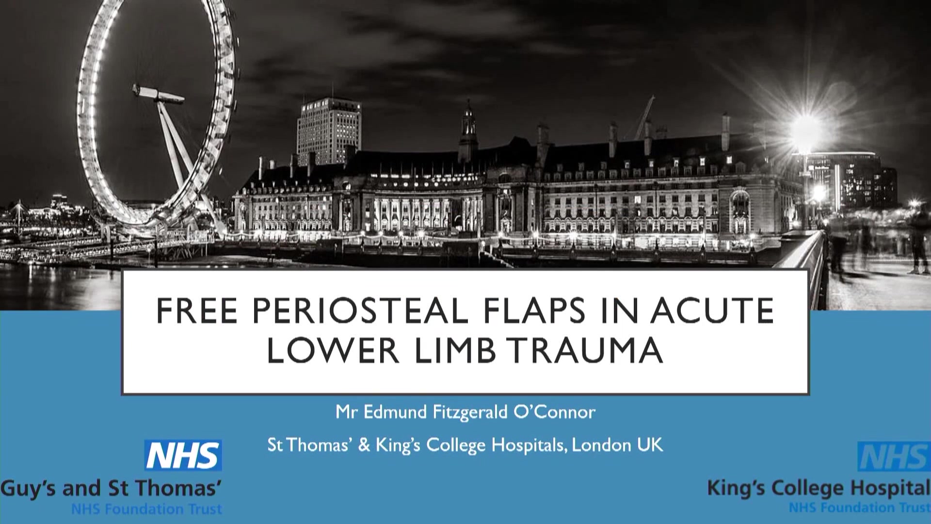 This presentation features Dr. Ed Fitzgerald, an ortho plastic consultant from King's major trauma center. He discusses clinical applications for managing high energy injuries, specifically focusing on the prevention of nonunion in open fractures. Dr. Fitzgerald explains the risk factors for nonunion, including age, smoking, and fracture patterns. He discusses the concept of anatomical versus physiological bone gaps, emphasizing the necessity to address these gaps to ensure proper healing. The presentation delves into the importance of periosteum in fracture healing and advocates for the use of periosteal flaps in treating nonunion cases. In detailing various case studies, Dr. Fitzgerald highlights the benefits of utilizing periosteal flaps, noting a high success rate in achieving bone union among patients with complex, high-risk injuries. He concludes by underscoring the need for a better understanding of patient risk factors for nonunion and the significance of innovative surgical techniques in orthopedics.