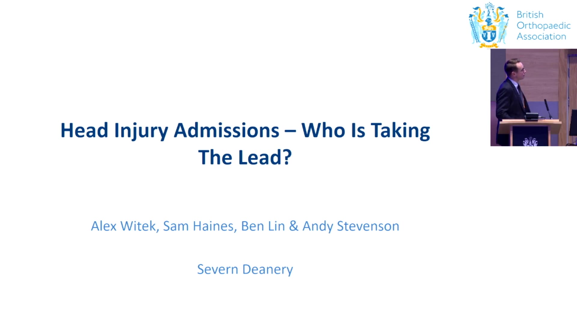The presentation, led by Alex Witek, focuses on the management of head injury admissions within the healthcare system. Alex introduces himself as a registrar in the Severn Deanery and discusses the collaborative project he undertook with colleagues Sam Haines, Ben Lin, and Andy Stevenson, a consultant. The main issue addressed is the unexpected burden that orthopedic teams face in managing head injuries, which was not part of their initial training in orthopedic surgery.