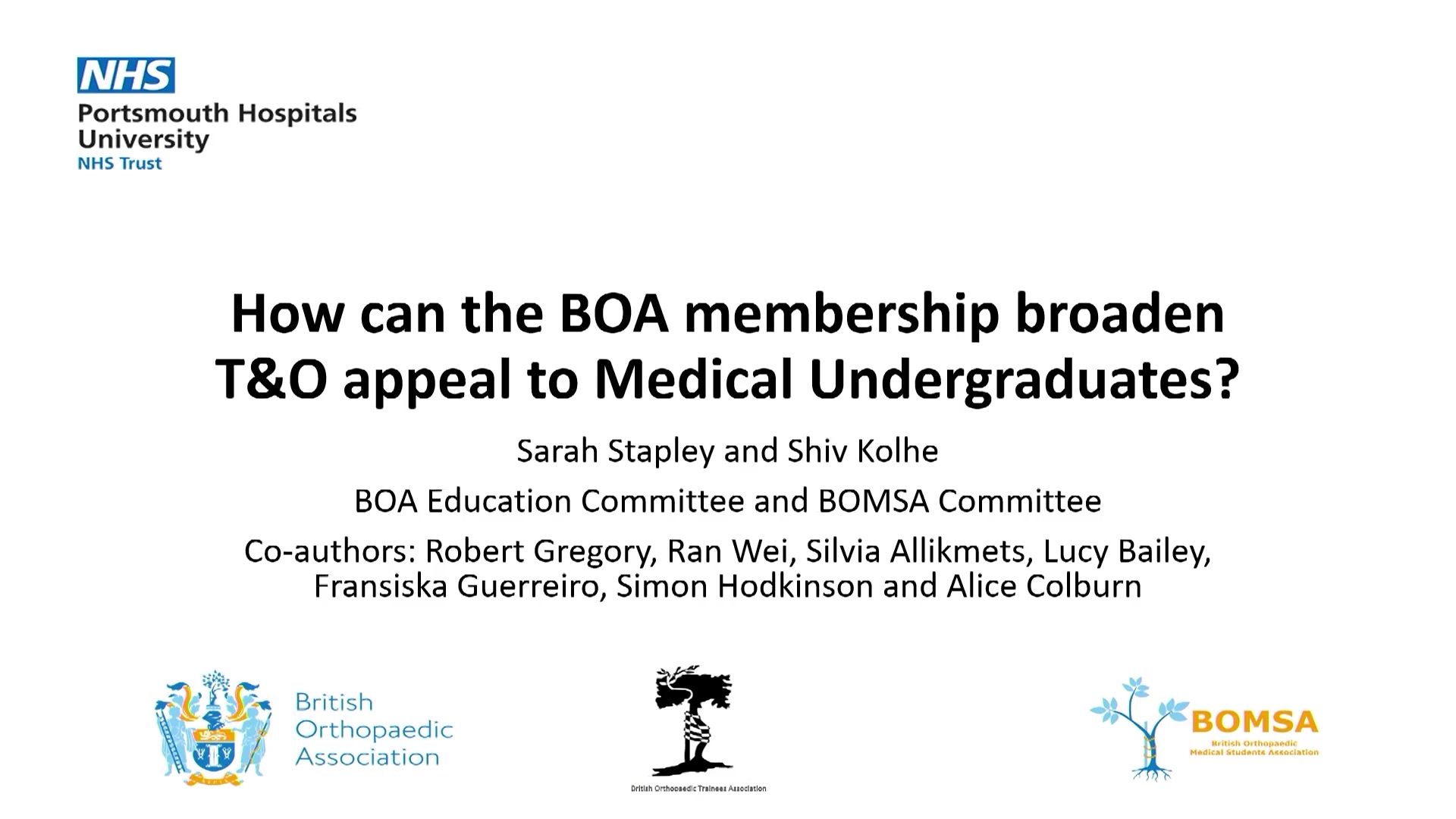How Can The BOA Membership Broaden T&O Appeal to Medical Undergraduates?
