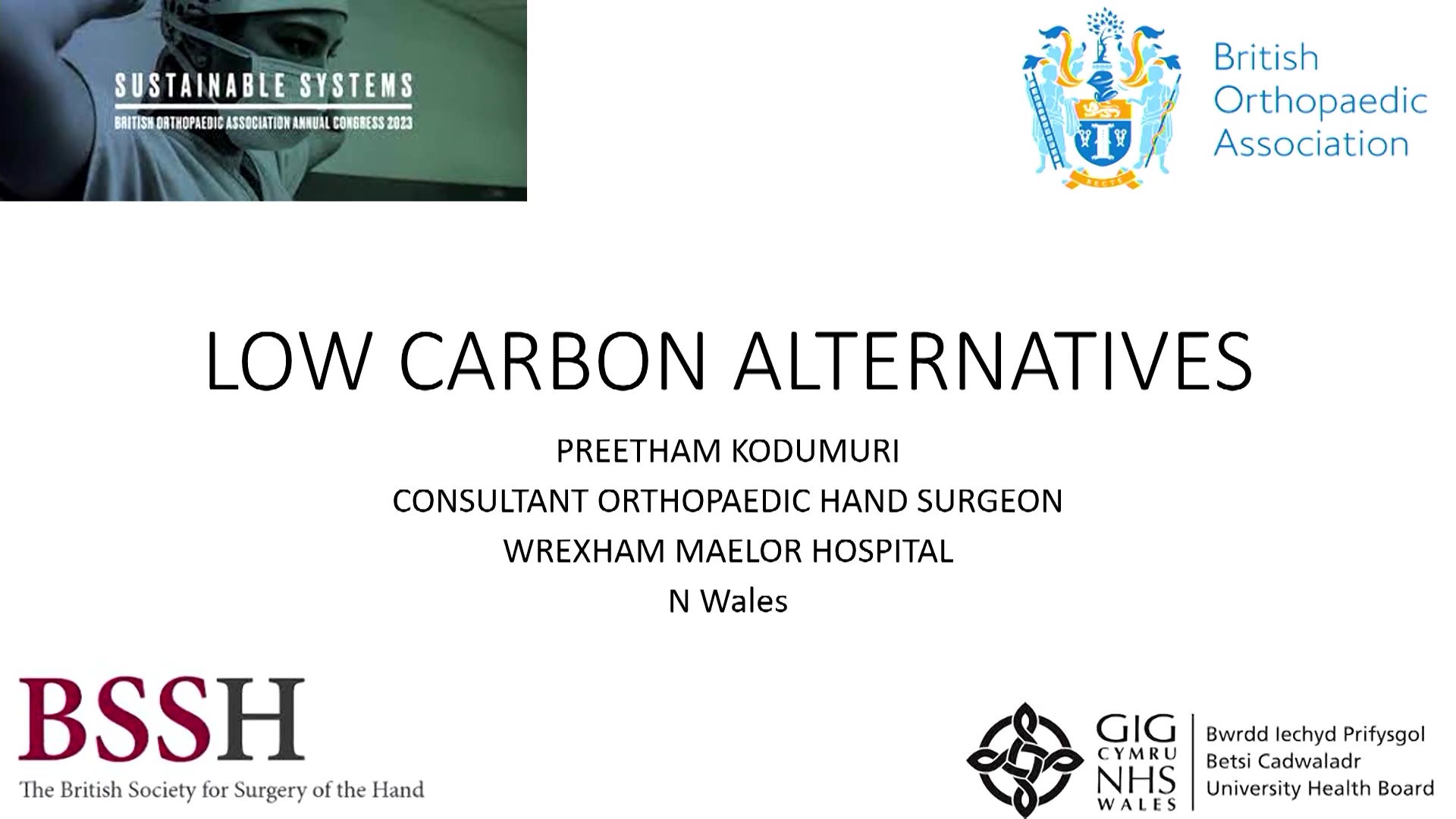 In this presentation, Preetham Kodumuri discusses the critical topic of integrating low carbon practices into daily clinical routines, particularly focusing on surgical settings within the healthcare system. He opens by acknowledging the audience and outlining the session's aim to explore practical alternatives to reduce carbon emissions in surgery. Identifying carbon hotspots, he points out that a significant factor lies within surgical environments, emphasizing the need for surgeons to take initiative.