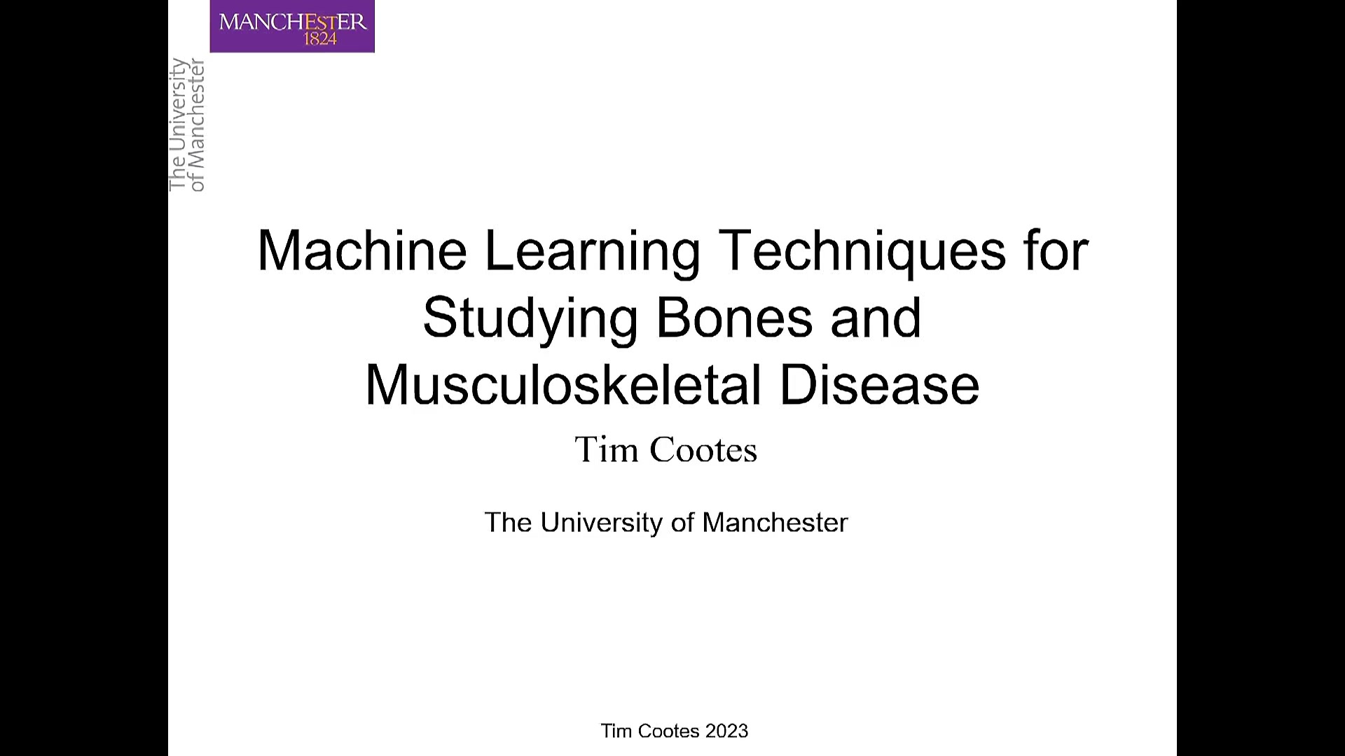 In this presentation, Tim Cootes discusses the application of machine learning in the analysis of bone images, primarily from a medical perspective. The session begins with an introduction to machine learning as a method for training systems to perform specific tasks using representative examples. Cootes explains how the analysis focuses on imaging techniques to locate and measure bone structures, identify diseases through the detection of abnormalities, and understand the variations in bone shapes across different populations and age groups.