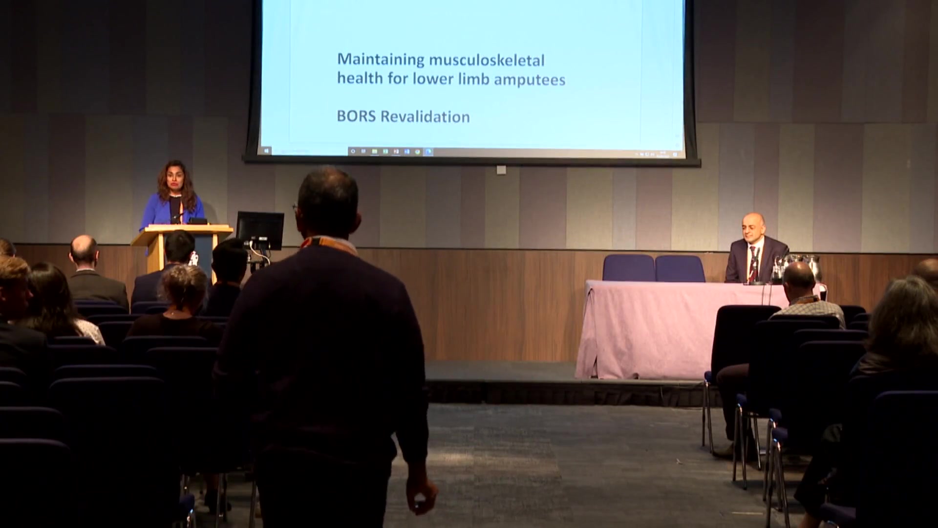 The session features Salma Chaudhury introducing a critical discussion on musculoskeletal health, particularly in relation to lower limb amputees. The collaborative work presented involves contributions from surgeons, engineers, and healthcare professionals, focusing on understanding musculoskeletal deterioration mechanisms and the impact of altered mechanical load on amputees, including military personnel and civilians, especially the aging population. The first speaker, Dr. Andrew Phillips, elaborates on advanced modeling techniques for predicting bone health in amputees, specifically utilizing musculoskeletal and finite element approaches to analyze bone responses to mechanical stimuli. He discusses the implications of finding correlations between load modifications post-amputation and potential bone degradation. Dr. Phillips emphasizes the importance of these findings in informing rehabilitation strategies and prosthetic design to enhance quality of life and reduce bone density loss risks.