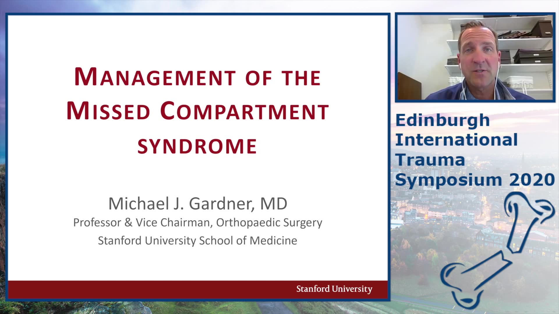 In this presentation, Michael J. Gardner from Stanford University discusses the complexities of managing missed compartment syndrome, a rare but serious condition. He begins by introducing a clinical case of a 26-year-old male found unconscious, who presented with symptoms such as a tense and swollen leg, high core temperature, and signs of acute renal failure. The talk emphasizes the difficulty of decision-making in such cases, the importance of establishing a timeline, and assessing physical examination findings, laboratory values, and compartment pressures to determine the viability of tissue.