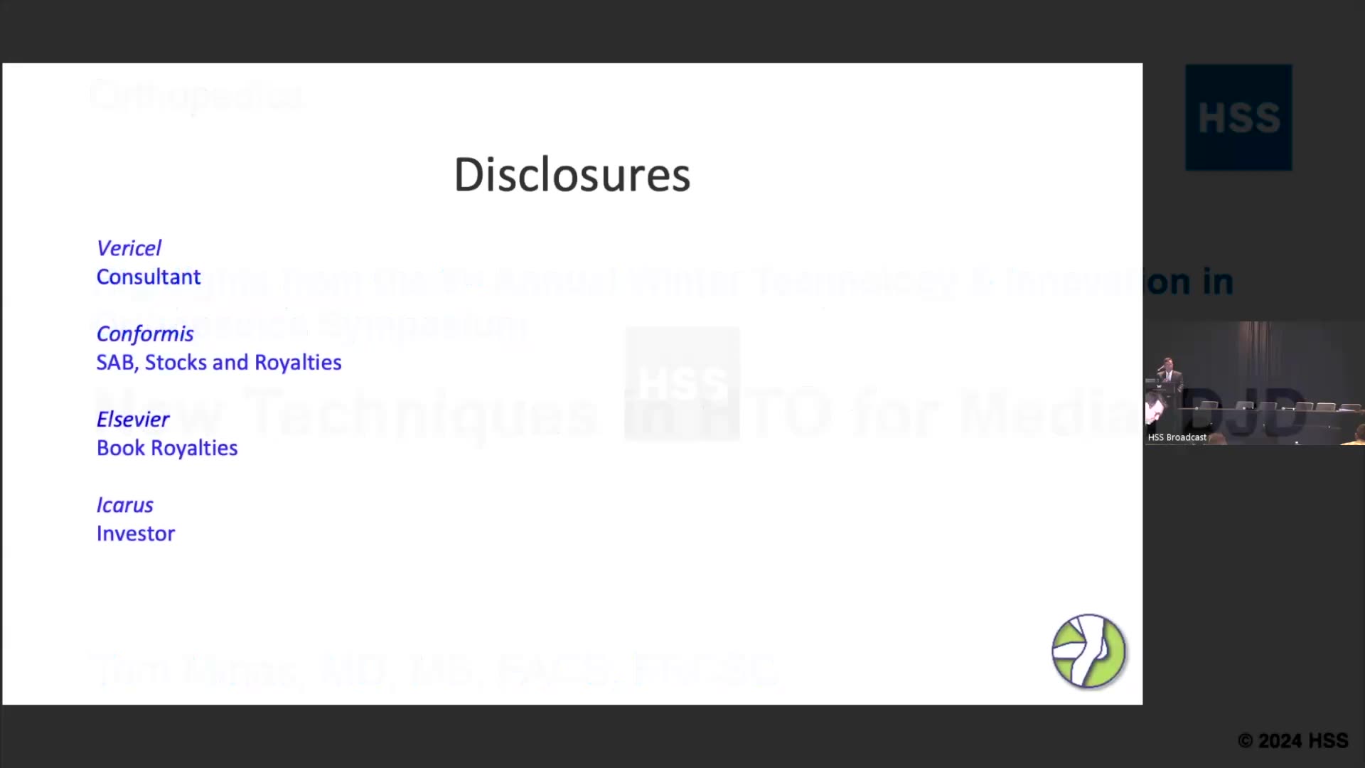 This video transcript details a lecture by Tom Minas discussing the rationale and techniques involving osteotomy procedures, particularly in orthopedic surgery related to knee conditions. Minas outlines the benefits of osteotomy as a biological solution that preserves joint integrity and offers lower risk of implant-related complications. He describes a case study involving a 37-year-old male patient with a complex knee injury and emphasizes the importance of correcting varus alignment to restore proper kinematics for athletic performance.