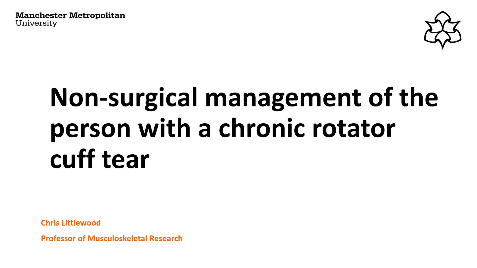 In this insightful presentation, Professor Chris Littlewood, a musculoskeletal research expert at Manchester Metropolitan University, evaluates the non-surgical management of chronic rotator cuff tears, particularly in patients over the age of 55. He highlights the prevalence of rotator cuff tears and the importance of distinguishing between symptomatic and asymptomatic cases, emphasizing that many individuals may harbor tears without exhibiting any pain or dysfunction. Chris discusses clinical guidelines advocating for non-surgical interventions, especially given the findings of recent systematic reviews showing comparable outcomes between surgical and physiotherapeutic treatments.