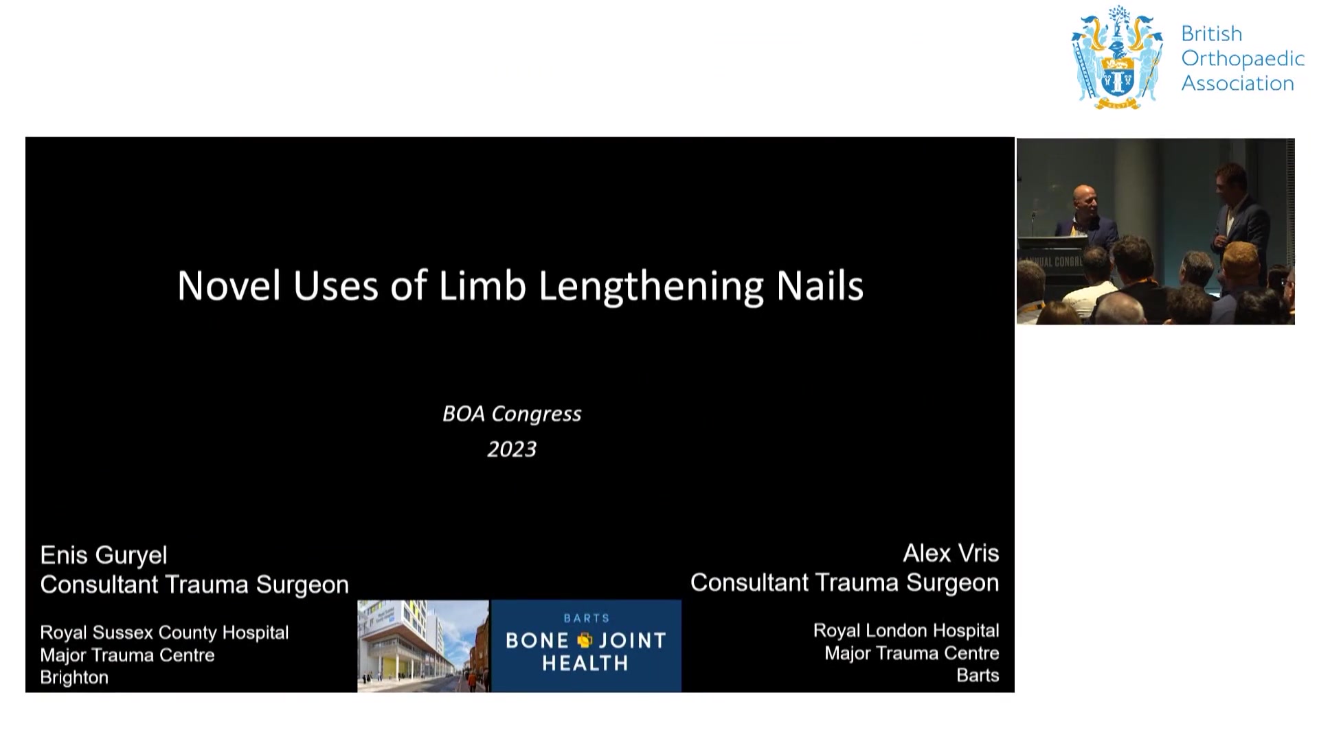 This video presentation features Enis Guryel and Alex Vris discussing advanced techniques and applications for the use of lengthening nails in orthopedic surgery, specifically focusing on deformity and trauma cases. Enis, a trauma surgeon based in Brighton, emphasizes novel uses for lengthening nails including correction of complex deformities, non-unions, and cases of bone loss, departing from traditional lengthening practices. He presents intricate case studies involving deformity corrections with detailed surgical techniques, such as using external fixators for initial alignment and then transitioning to lengthening nails for further corrections. Alex expands on this by presenting additional complex cases of polytrauma with substantial bone loss and highlighting successful rehabilitation approaches following advanced surgical interventions. Throughout the presentation, there is a strong focus on careful planning, innovative surgical techniques, and the importance of postoperative management, encapsulated in a series of learning points based on their experiences. The session encourages collaboration and learning within the orthopedic community in order to enhance patient outcomes.