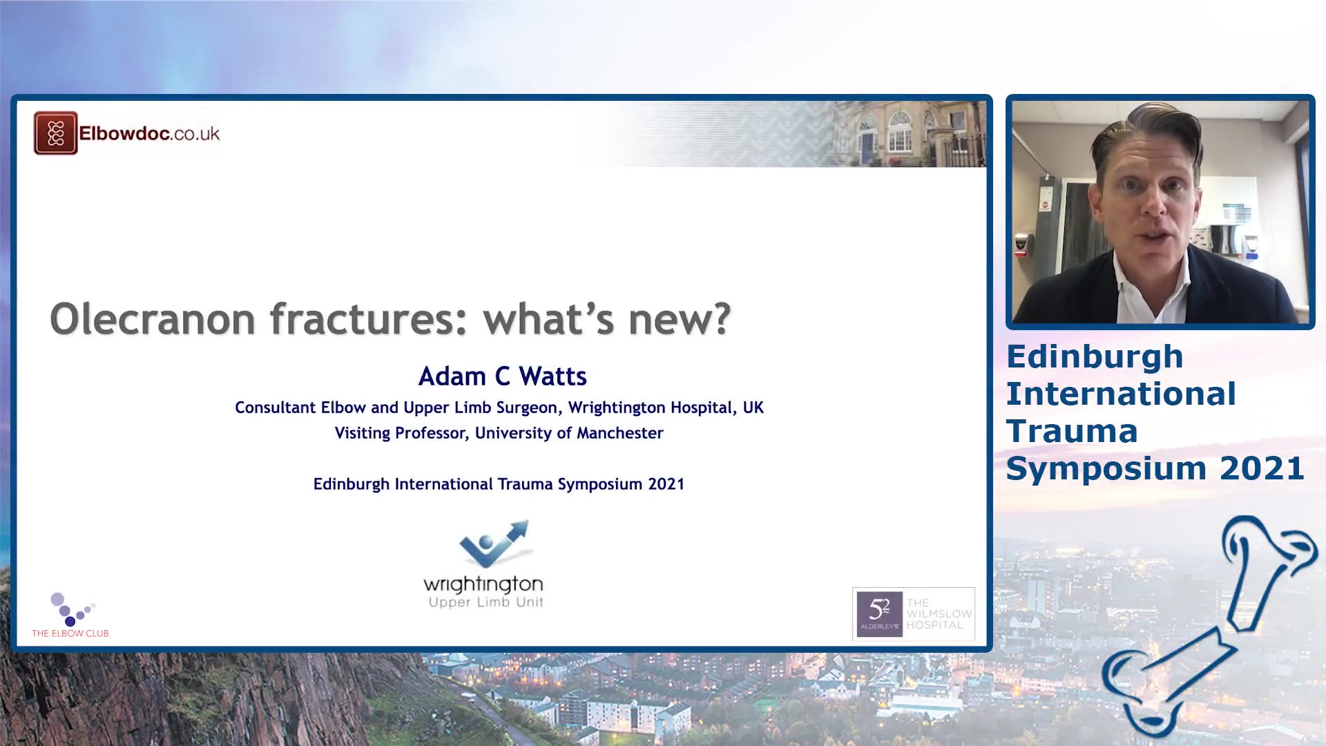 In a comprehensive lecture on olecranon fractures, Adam Watts, a Consultant Elbow Surgeon at Wrightington Hospital in the UK, introduces the topic by explaining the basic anatomy of the olecranon and its significance in elbow fractures. He emphasizes the increasing frequency of olecranon fractures with age and the importance of understanding the forces exerted by the triceps muscle, which plays a crucial role in treatment considerations.