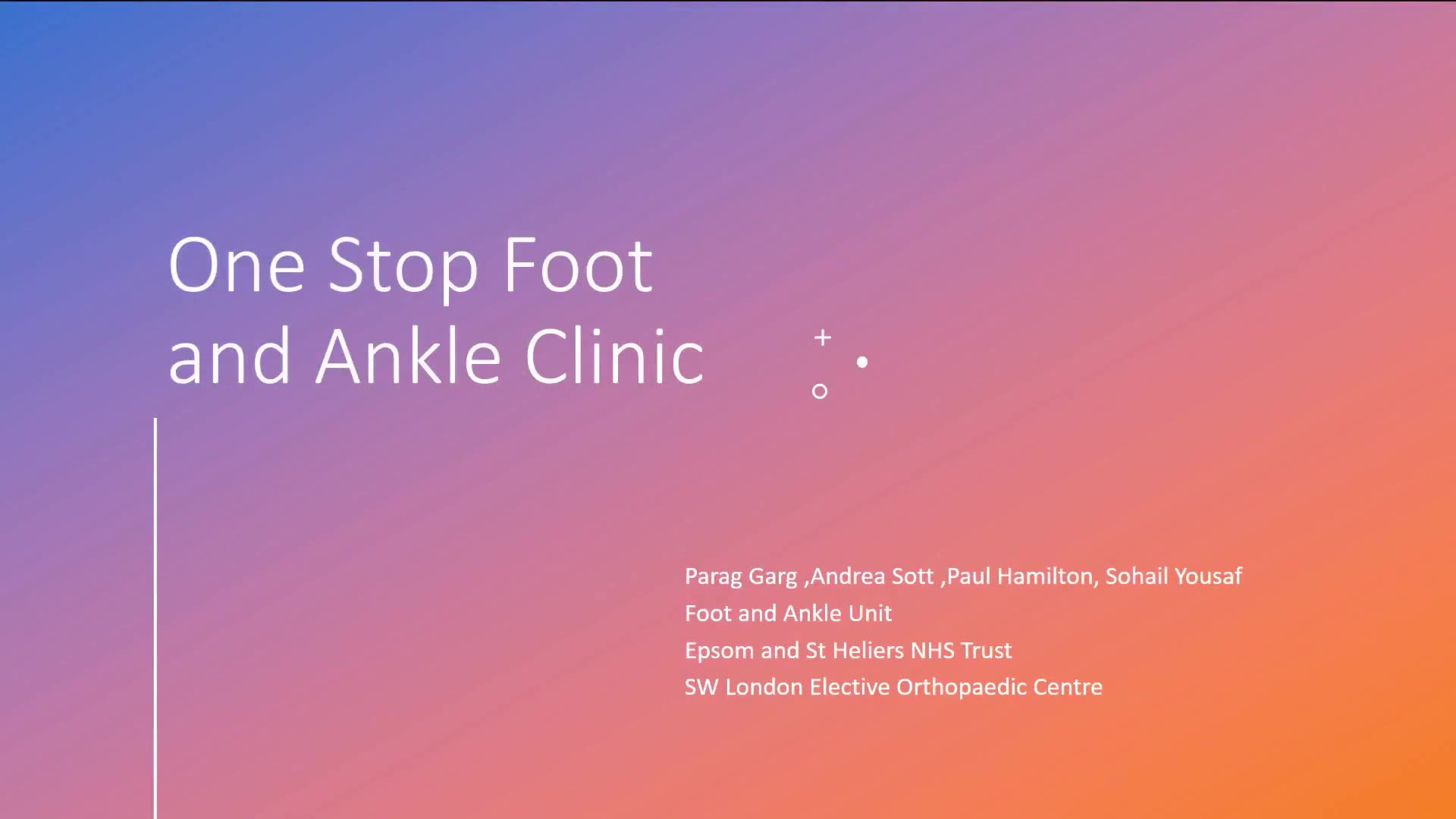 In this presentation, Parag Garg outlines the establishment and workings of the One Stop Foot and Ankle Clinic at Epsom St Heliers Hospital. He discusses the traditional patient flow from GP to orthopedic clinics, highlighting the delays caused by referrals and the need for multiple appointments (often taking 8 to 34 weeks) for treatments that could be provided in one visit. Parag introduces the clinic model launched on January 12, 2022, which collocates a range of specialists—including radiologists, physiotherapists, and orthopedic technicians—under one roof, allowing patients to receive comprehensive care on the same day, significantly improving their experience and reducing the overall treatment period.