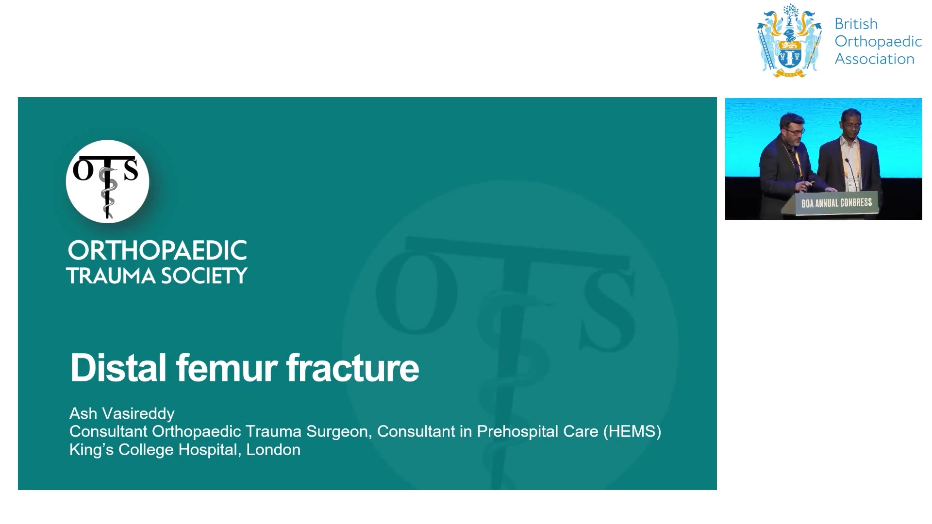 Multiple surgical strategies are explored, including the application of intramedullary nails, lateral plates, and bi-condylar plating, with a focus on technical aspects such as avoiding malalignment during surgery. Ash shares insights from recent studies comparing different fixation methods, revealing no significant differences in outcomes, but highlighting that alignments and reduction techniques are critical for successful recovery. The presentation stresses the importance of treating distal femur fractures similarly to neck of femur fractures in elderly patients, advocating for comprehensive surgical approaches that allow patients to regain mobility quickly. The discussion is enriched by a panel Q&A, touching upon practical tips and experiences related to the surgical management of these fractures.