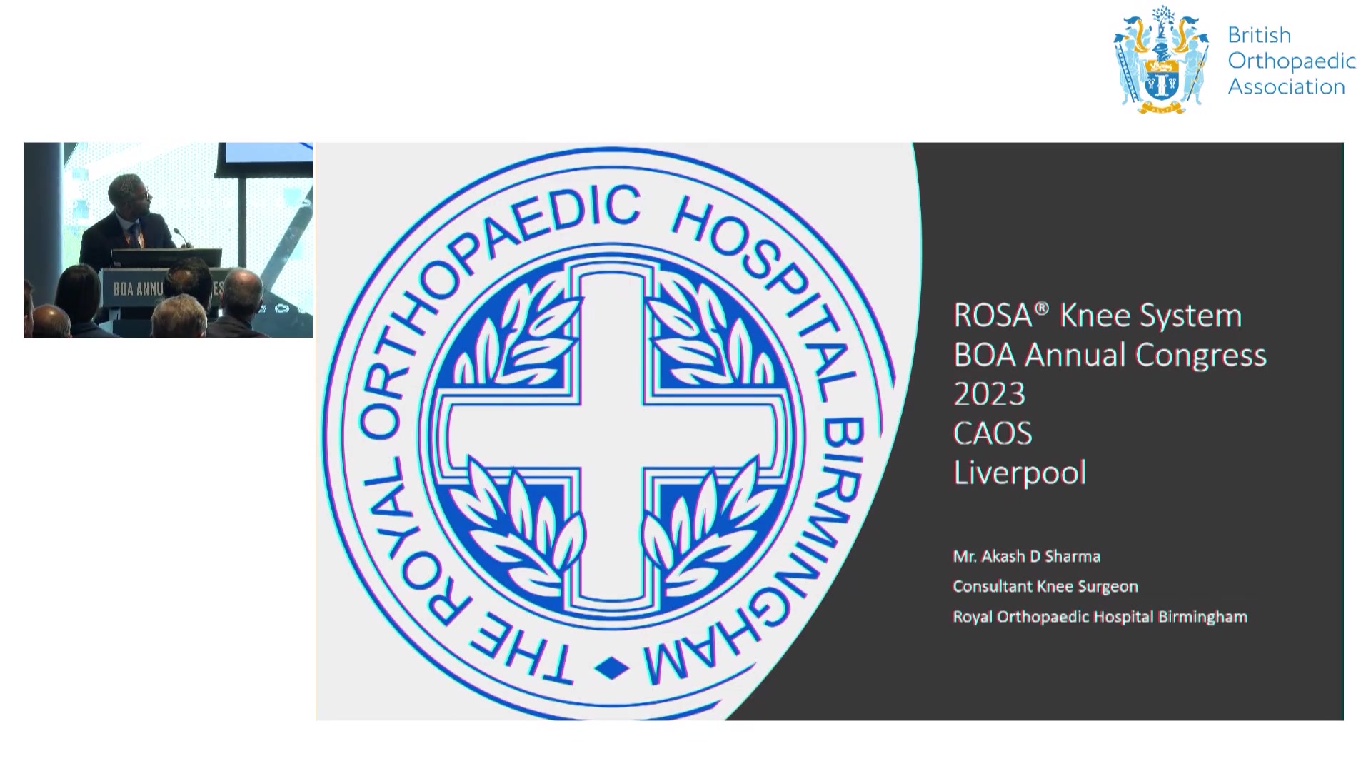 In this detailed presentation, Akash Sharma, a consultant knee surgeon at the Birmingham Royal Orthopedic Hospital, introduces the ROSA robotic system and shares a clinical demonstration of his knee replacement procedure. He discusses the importance of pre-operative planning, including the CPAK classification for coronal plane alignment, and emphasizes the necessity of considering three-dimensional and soft tissue aspects—referred to as the fourth dimension—in knee surgery.