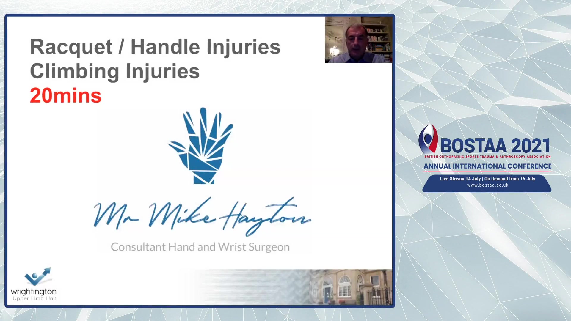 In this educational presentation, Mike Hayton from Wrightington Hospital discusses common injuries related to racquet sports and climbing, specifically focusing on hook of hamate and ECU (extensor carpi ulnaris) injuries. He outlines the mechanisms of injury, typical symptoms, and diagnostic approaches for these conditions. Hayton emphasizes the surgical approach for the hook of hamate, highlighting how athletes often require excision of the fragment due to high non-union rates, whereas non-athletes may benefit from conservative treatment like splinting.