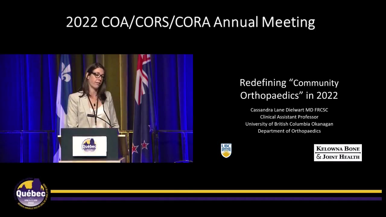 Throughout the presentation, he details the unique challenges faced by orthopedic surgeons in community settings, such as lack of resources, absence of advanced trainees, and varying access to support services. Dielwart underscores that community surgeons are increasingly specialized and possess multiple fellowships, evolving the definition of a community orthopedic surgeon to those who serve their community's specific needs rather than conforming to traditional categorizations.