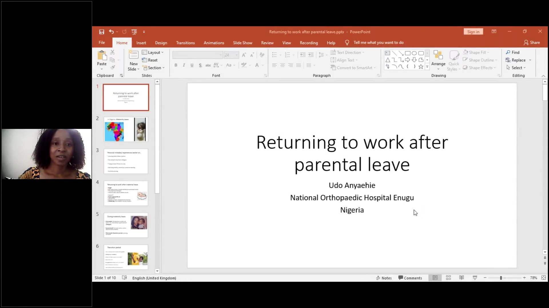 The transcript discusses the challenges and strategies for returning to work after parental leave, specifically from the perspective of a mother in Nigeria, Udo Anyaehie. It opens with a brief introduction, where Udo shares her experience of maternity and parental leave in Nigeria, highlighting the lack of paternity leave and the existing maternal leave policy which grants four months to mothers.