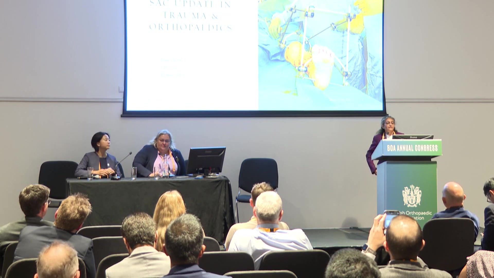 Deepa presents logbook analysis from 2019 to January 2022, illustrating a significant decline (24%) in elective operative numbers post-COVID, alongside missed surgical training opportunities. While trauma numbers appear to be recovering, elective surgical numbers do not show similar improvement. She highlights various factors contributing to this issue, including reduced operating sessions and staffing shortages. Regions show variation in surgical recovery, particularly with knee replacements highlighted as an elective bellwether.