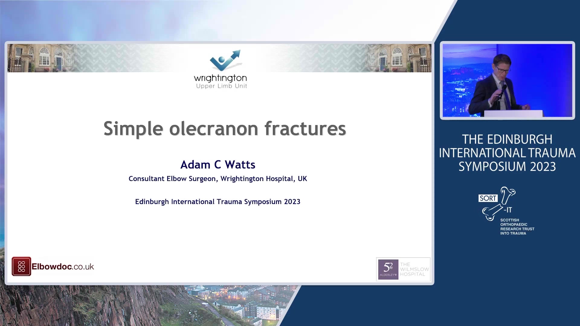 Watts emphasizes the management strategies for simple transverse olecranon fractures, discussing factors that influence decision-making such as age, comorbidities, functional demands, and the specific characteristics of the fracture itself. He compares the commonly used Schatzker and Mayo classification systems, noting their respective merits and the criticality of assessing joint stability.