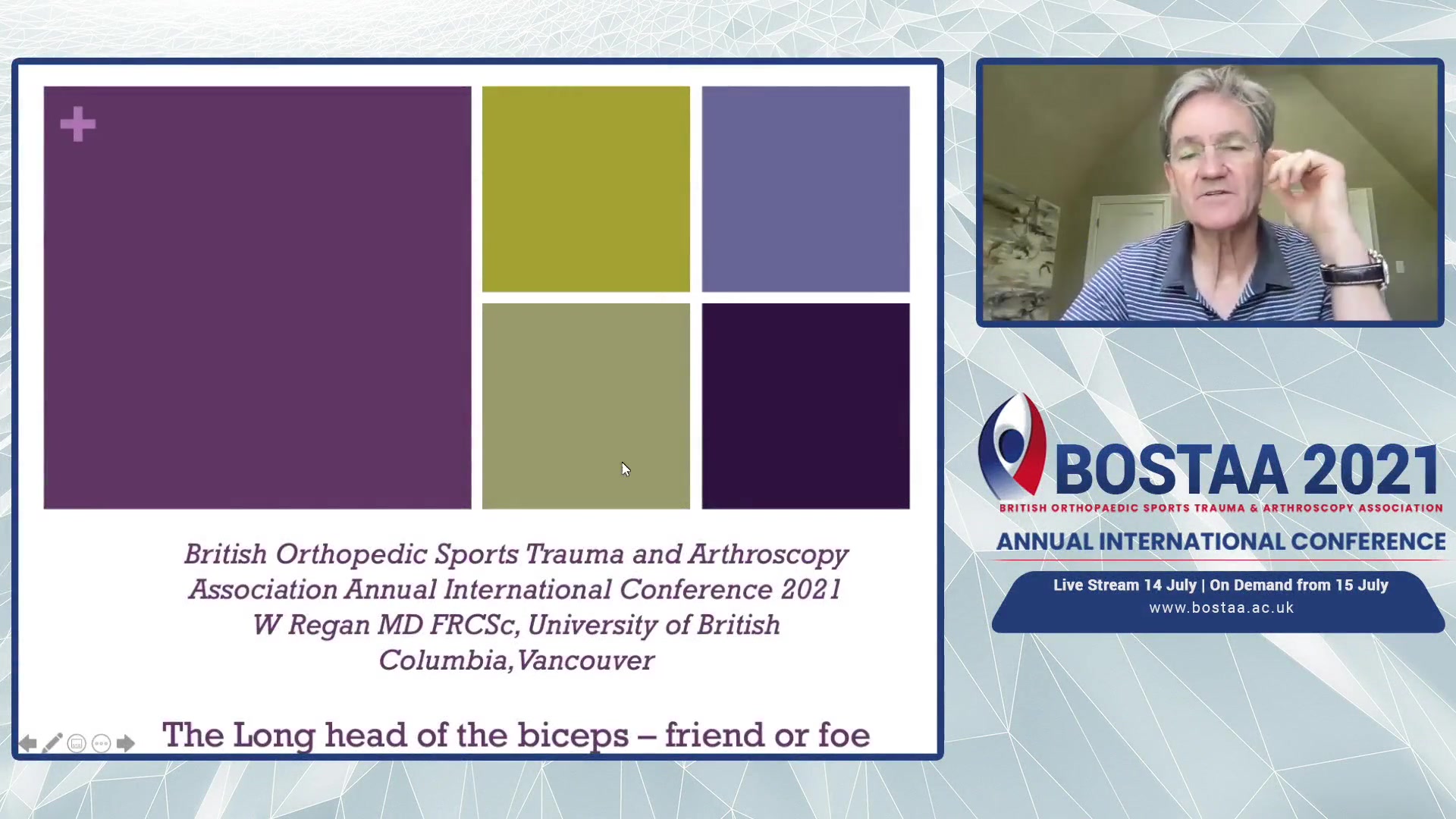 Dr. Bill Regan introduces a discussion on the long head of the biceps, exploring its dual role as both a beneficial and problematic structure in the shoulder. He elaborates on its uncertain function and common pathologies associated with the tendon, such as tenosynovitis and its involvement with the biceps-labral complex and rotator cuff injuries. Regan presents a range of management strategies, including tenodesis and tenotomy, emphasizing the importance of patient age and accompanying conditions in determining the best approach. He discusses surgical findings, the implications of various repair techniques, and the evolving understanding of SLAP tears in patients. Regan concludes by inviting audience engagement and questions regarding his findings and opinions on managing biceps tendon injuries.