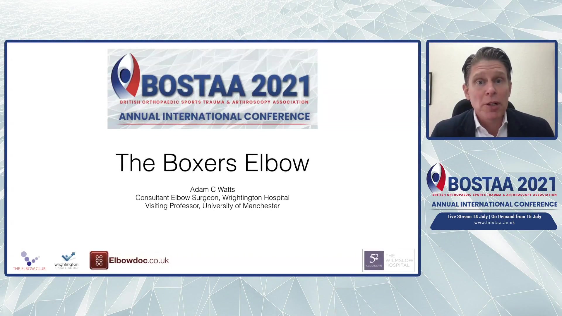 In this comprehensive presentation, Adam Watts, a consultant elbow surgeon from Wrightington Hospital, discusses the topic of "boxers elbow," delving into the specific injuries and considerations associated with this martial art. He outlines various types of injuries that boxers may sustain, primarily focusing on internal impingement, which occurs when anatomical structures in the elbow joint collide during punches, leading to pain and restricted movement.