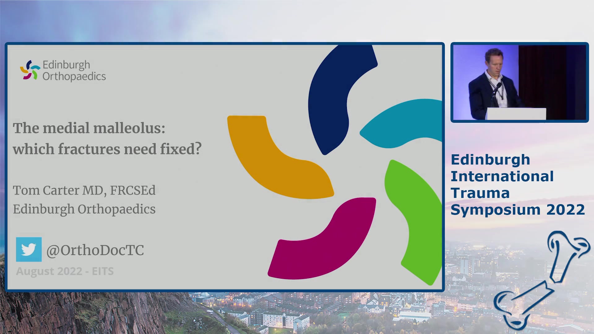 This presentation by Tom Carter addresses the treatment methods for fractures of the medial malleolus, focusing on the decision between fixation and non-fixation. Carter discusses the implications of each approach, including risks such as infection and metalwork issues versus concerns of nonunion and instability. He highlights that certain fractures, particularly vertically unstable SAD type injuries, typically require fixation, while others may not. A key part of the presentation covers the results from a recent randomized controlled trial (RCT) conducted in Edinburgh, scrutinizing whether internal fixation of well-reduced fractures is superior to non-fixation after stabilizing the fibula. Key findings concluded that neither approach significantly outperformed the other based on the Oxford Malleolar Assessment Score (OMAS) at one-year follow-up. The speaker points out that though fixation often yields better functional outcomes, it comes at the cost of more complications, including a notable rate of radiographic nonunion in the non-fixed group. The findings suggest conservation in surgical intervention should be considered, particularly for patients with compromised medial soft tissues. Carter concludes with the recommendation to reserve non-fixation for high-risk patients or those with poor tissue quality.