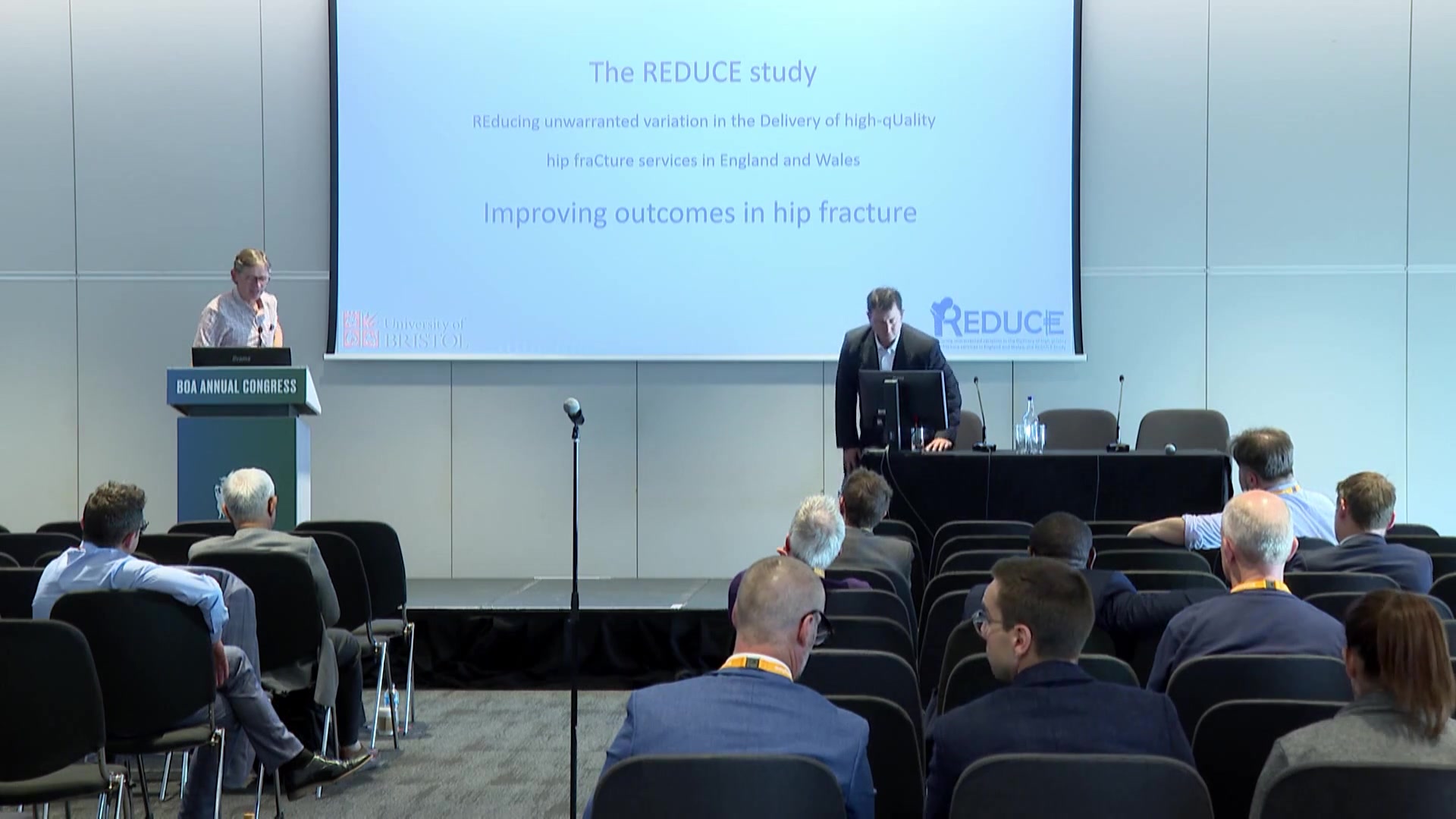 The talk, presented by Antony Johansen, centers around the REDUCE study, which aims to analyze and improve the care of hip fracture patients across different hospitals in the UK. Johansen expresses his initial skepticism about the validity of data presented without proper statistical analysis, which prompted the collaboration with Celia Gregson to conduct comprehensive research using large patient datasets.