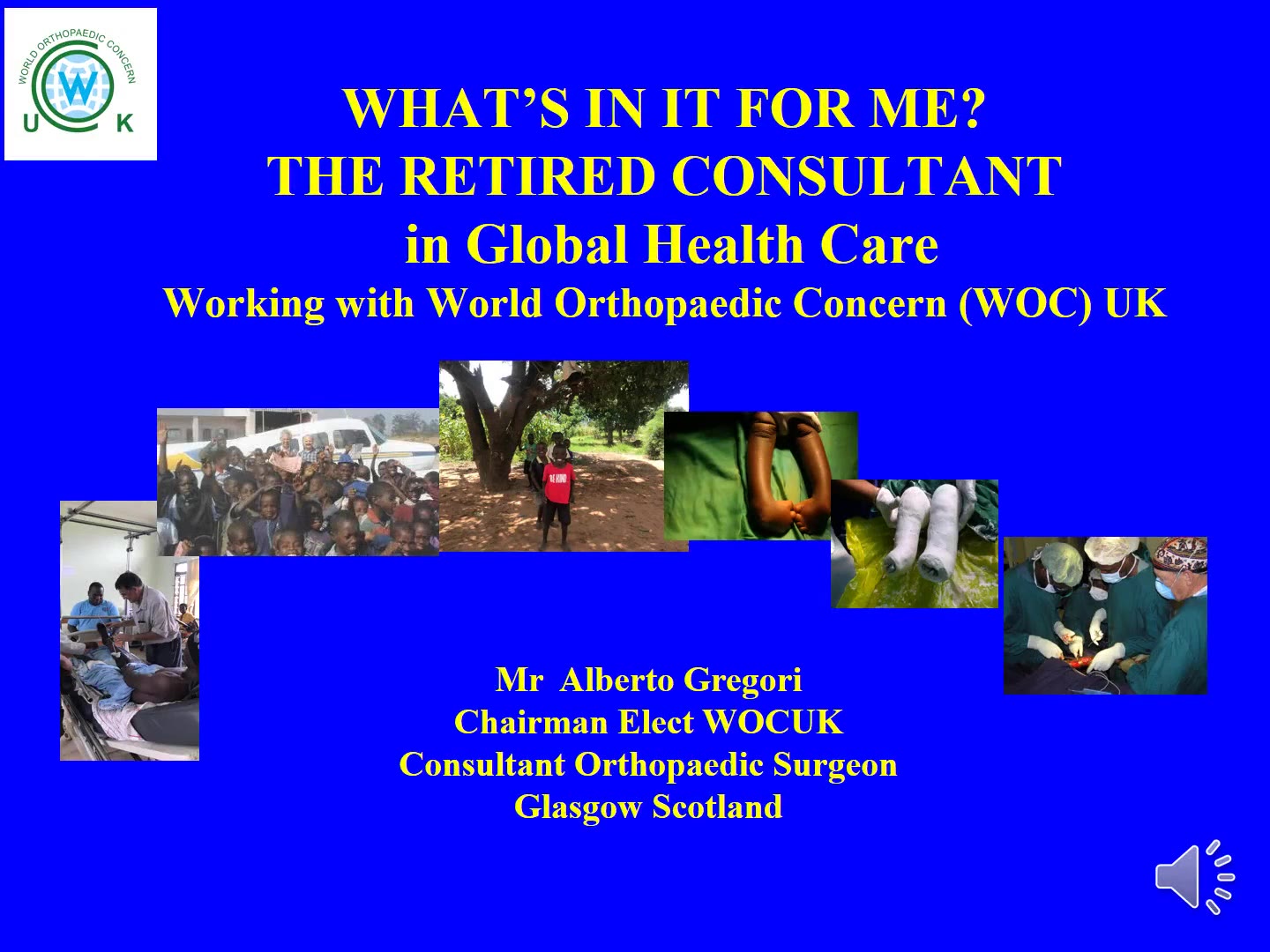 Alberto introduces World Orthopaedic Concern (WOC), a charity dedicated to improving orthopaedic education and healthcare in developing countries. He highlights WOC's multifaceted approach, which includes teaching, providing direct support to local healthcare systems, and fostering partnerships with international agencies. His presentation illustrates how retired professionals can still contribute meaningfully through practical skills sharing, mentorship, and by participating in surgical camps.