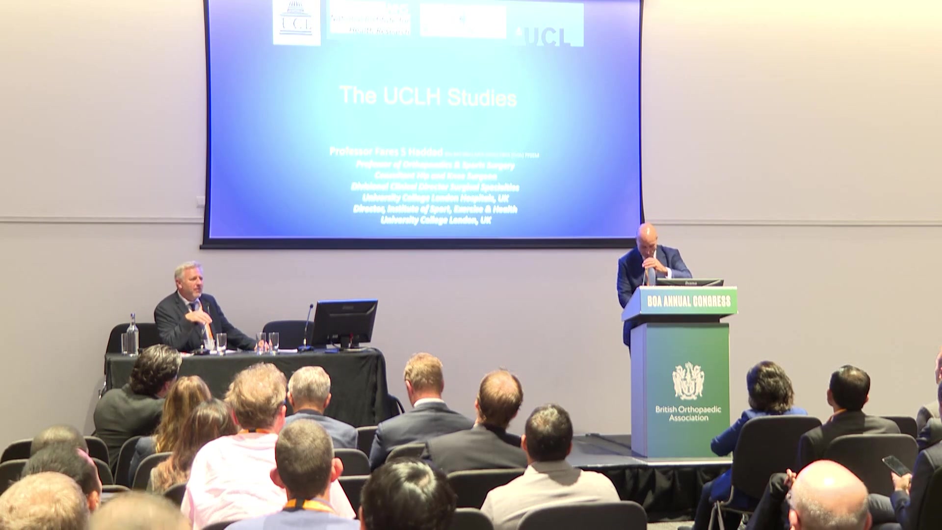 In this engaging session, Fares Haddad presents recent findings from a series of studies focused on robotic-assisted hip and knee surgeries at the Southern hub. He humorously encourages audience participation, assuring those who need to leave that their names will be remembered. Haddad begins by discussing the importance of biomechanical restoration in hip surgeries, highlighting positive outcomes from their randomized controlled trial (RCT) using MAKO technology. With a strong emphasis on data, he notes the statistical significance in the restoration of biomechanics and the safety of robotic surgeries compared to conventional methods.