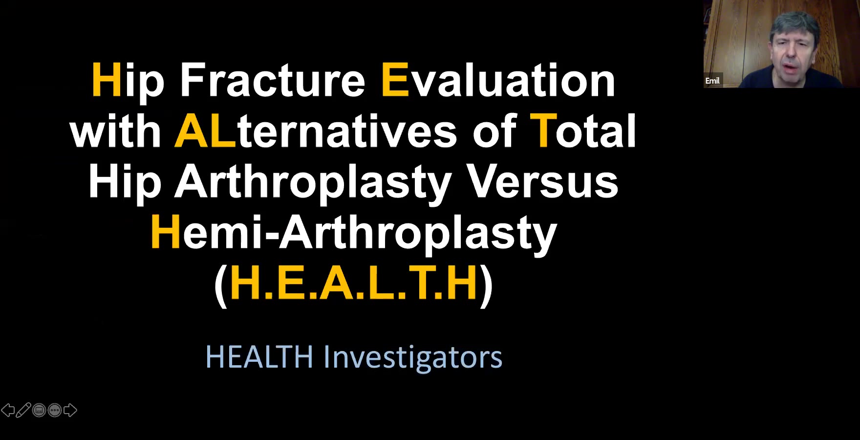 In this presentation, Emile Schemitsch discusses the results of a large randomized controlled trial published in the New England Journal of Medicine, which compares Total Hip Arthroplasty (THA) and Hemi-Arthroplasty for patients with displaced femoral neck fractures. Conducted across 80 sites worldwide and led by Mohit Bhandari from McMaster University, the study was initiated due to significant controversies surrounding the management of hip fractures. The primary goal was to examine the risk of unplanned secondary hip procedures within 24 months post-surgery across a diverse cohort of 1495 patients aged 50 and older.